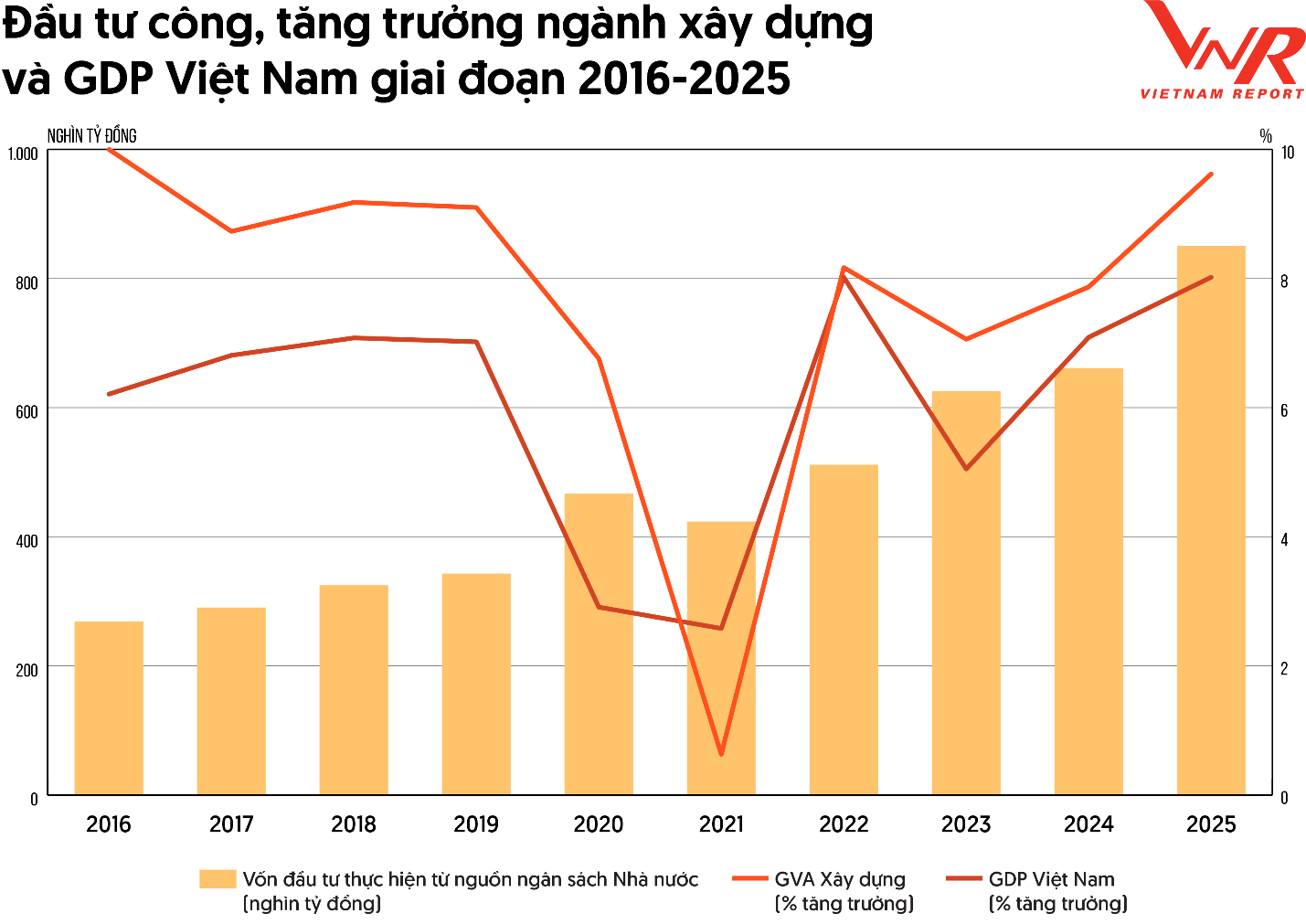 Bước vào chu kỳ mới, Vietnam Report nhìn nhận: Ngành xây dựng đang sở hữu ba nền tảng quan trọng: Dòng việc dồi dào, năng lực doanh nghiệp cải thiện, vai trò dẫn dắt kinh tế ngày càng rõ nét.