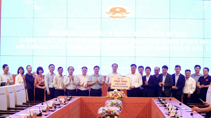 Nhằm chia sẻ khó khăn với địa phương, Bộ Y tế đã ủng hộ Quỹ Phòng, chống thiên tai TP. Huế 50 triệu đồng; trao tặng Sở Y tế TP. Huế 20 triệu đồng tiền mặt và thuốc, vật tư y tế trị giá 850 triệu đồng. Ngoài ra, các cơ sở y tế trong thành phố cũng được nhận 1.000 suất dung dịch sát khuẩn trị giá 110 triệu đồng, Bệnh viện Y học cổ truyền và Trung tâm Y tế Phú Xuân mỗi đơn vị được hỗ trợ 70 triệu đồng cùng một số cơ số thuốc và vật tư y tế thiết yếu phục vụ công tác khắc phục hậu quả mưa lũ.