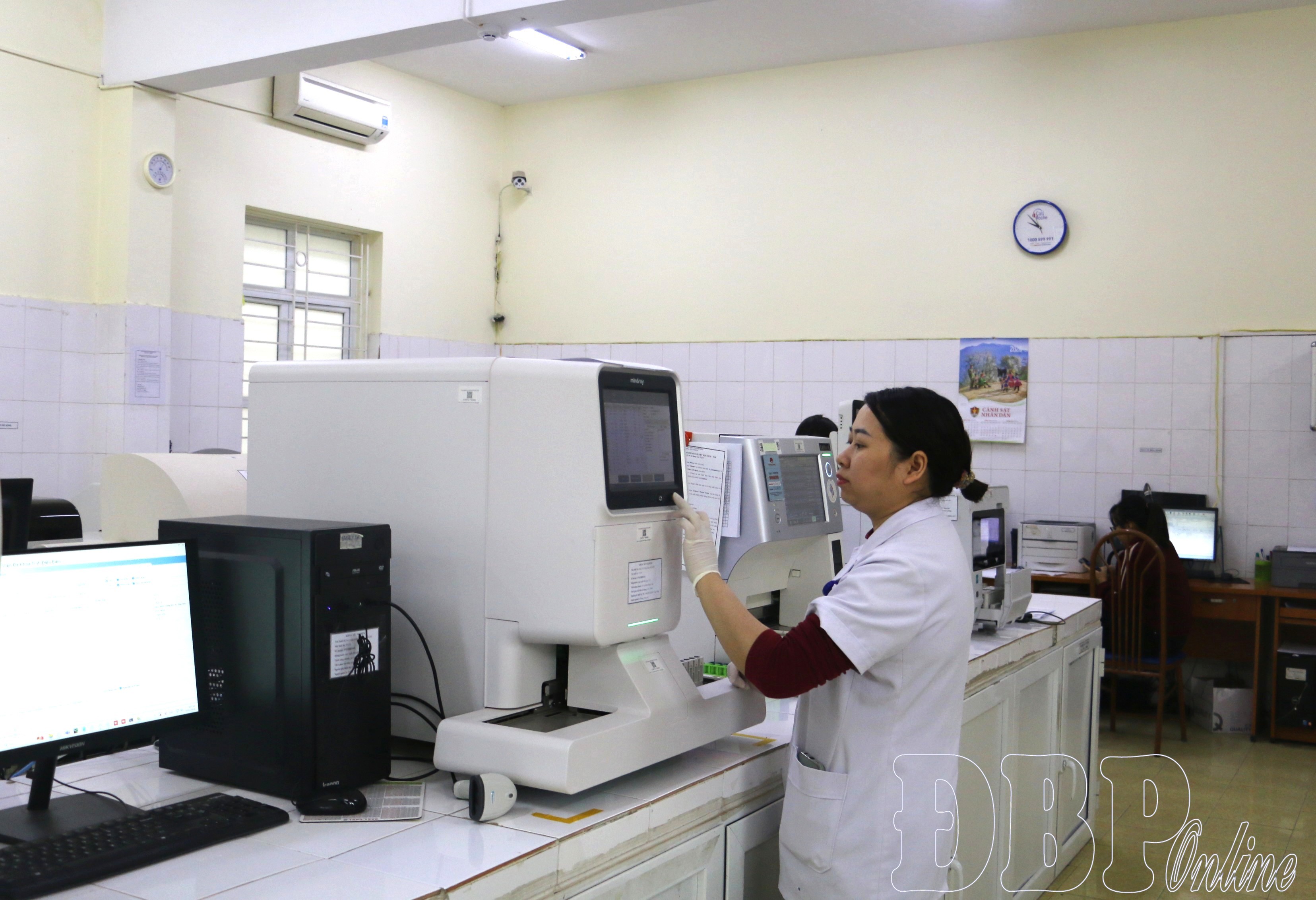 Cán bộ Khoa Xét nghiệm, Bệnh viện Đa khoa tỉnh vận hành hệ thống máy xét nghiệm huyết học tự động.