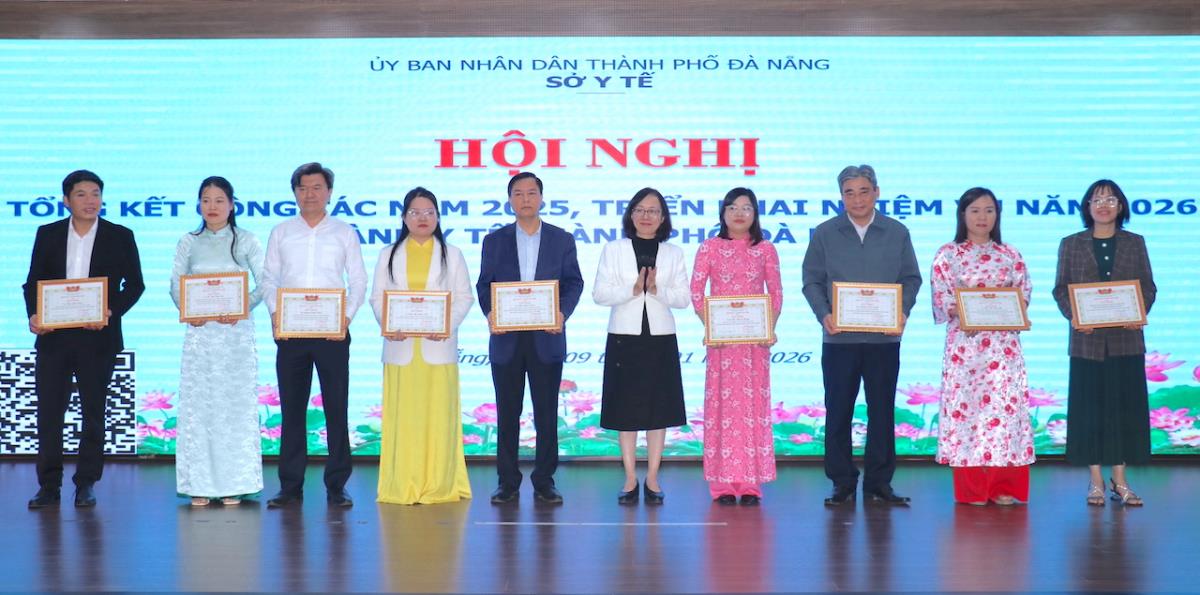 Giám đốc Sở Y tế TP Đà Nẵng Trần Thanh Thủy trao tặng Giấy khen cho các tập thể, cá nhân có thành tích xuất sắc trong công tác năm 2025.