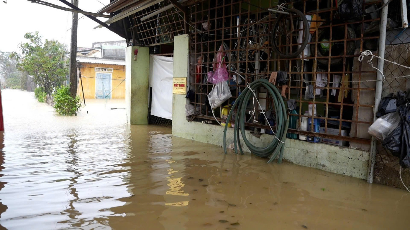 Các khu dân cư bị ngập sâu, người dân khó khăn trong việc di chuyển.