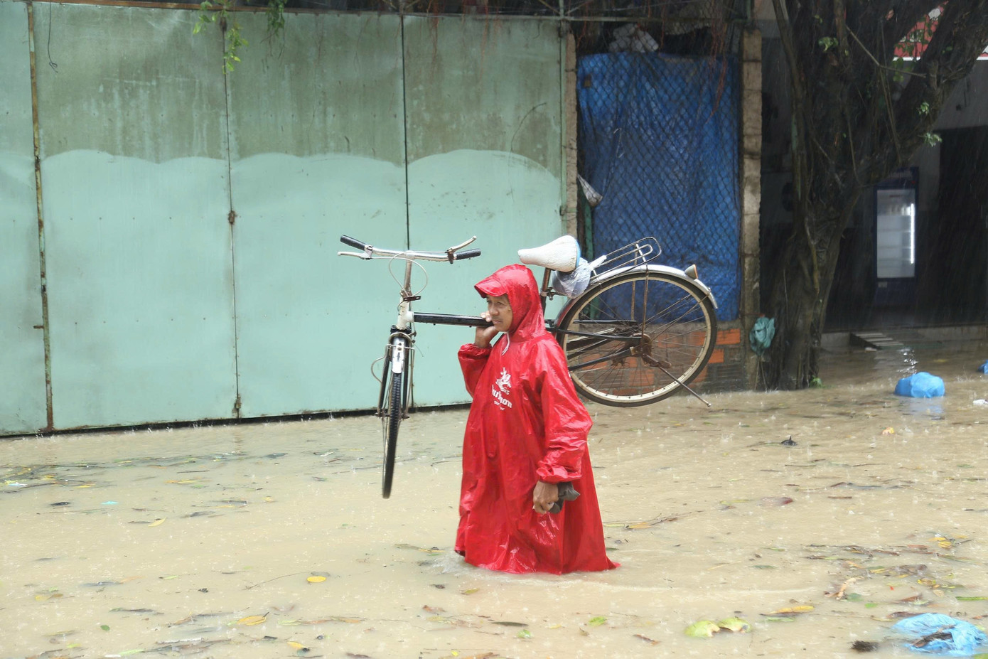 Mưa lớn cũng ngập lụt diễn ra diện rộng trên địa bàn phường Quy Nhơn Bắc, mực nước giao động từ 0,2 - 0,7m. Trong đó, khu phố 4 khoảng 80% nhà dân bị ngập nước, mực nước 0,8 m, hiện nước đang rút dần.