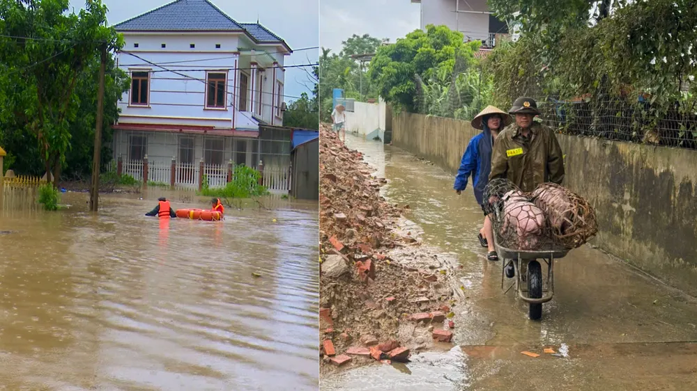 Theo Thượng tá Trường, nước lũ dâng cao khiến nhiều hộ dân trong xóm bị ngập sâu, tất cả lực lượng và các ban ngành, đoàn thể của xã đã thực hiện việc cứu hộ, hỗ trợ nhân dân từ 5 giờ sáng hôm qua liên tục đến hiện tại.