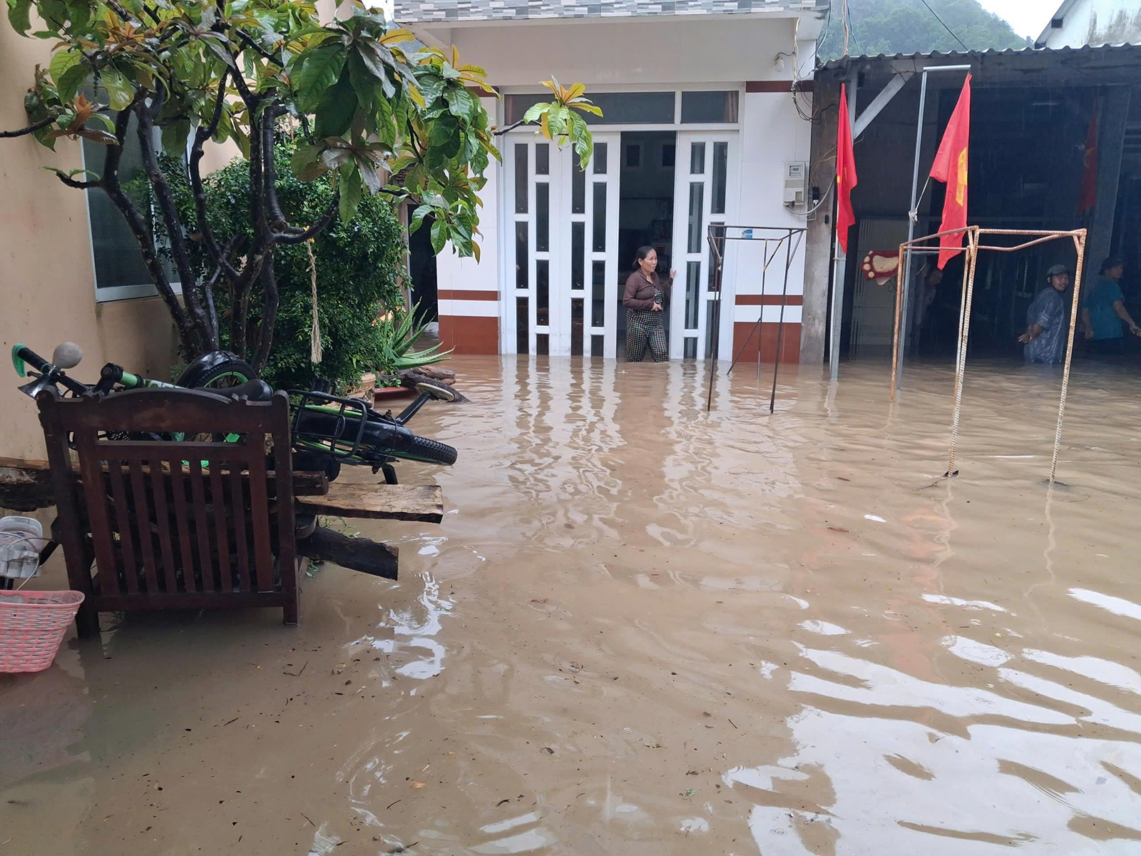 Trước đó, mưa lớn liên tục trong hai ngày 24 và 25/10 khiến nước từ khu vực đồi núi đổ xuống khu dân cư ấp Bãi Ngự. Nước đổ nhanh khiến người dân không kịp trở tay. Nhiều nhà bị nước tràn vào sâu hơn nửa mét, gây ngập tài sản.