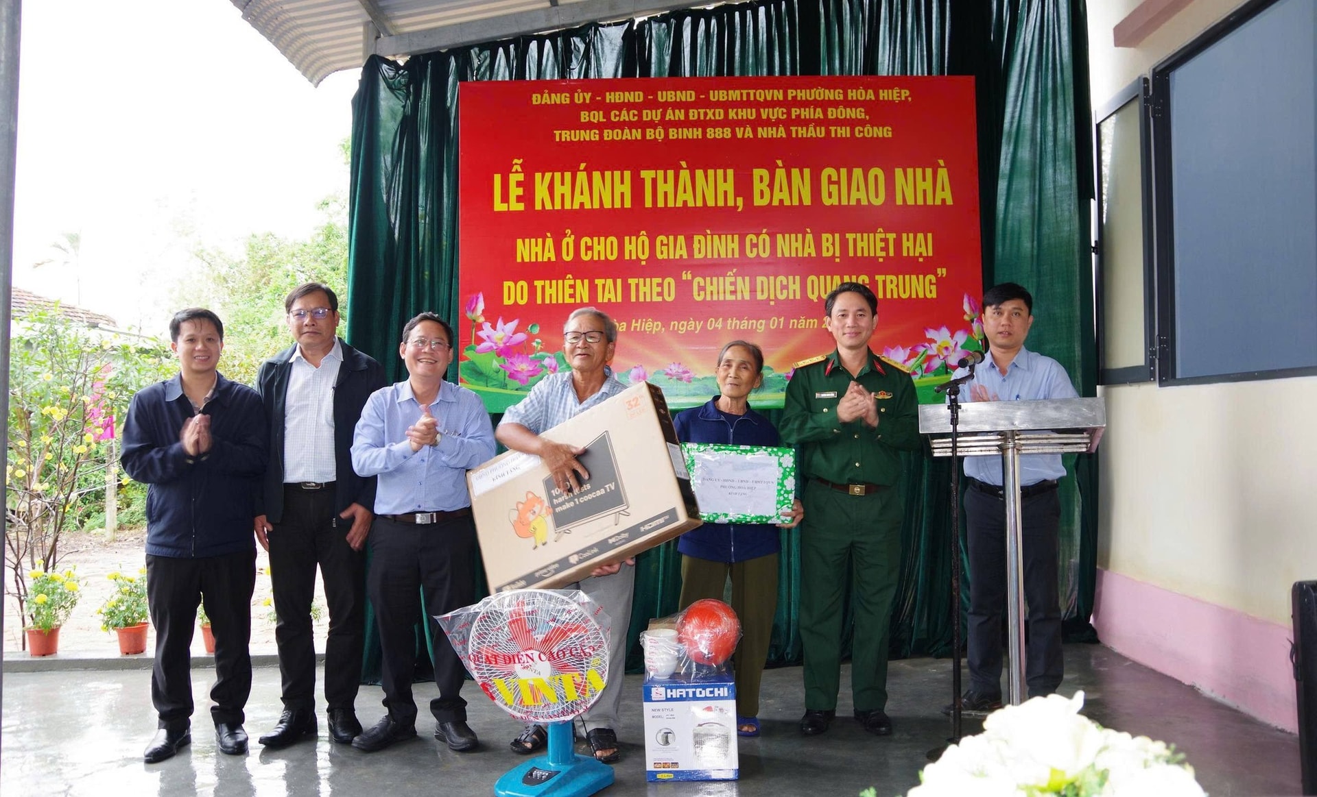 Chiều ngày 4-1, Trung đoàn BB888/Bộ CHQS tỉnh Đắk Lắk phối hợp với cấp ủy, chính quyền phường Hòa Hiệp, tỉnh Đắk Lắk long trọng tổ chức khánh thành, bàn giao nhà cho hộ gia đình ông Lê Châu, khu phố Phú Hiệp 1 bị thiệt hại do thiên tai.