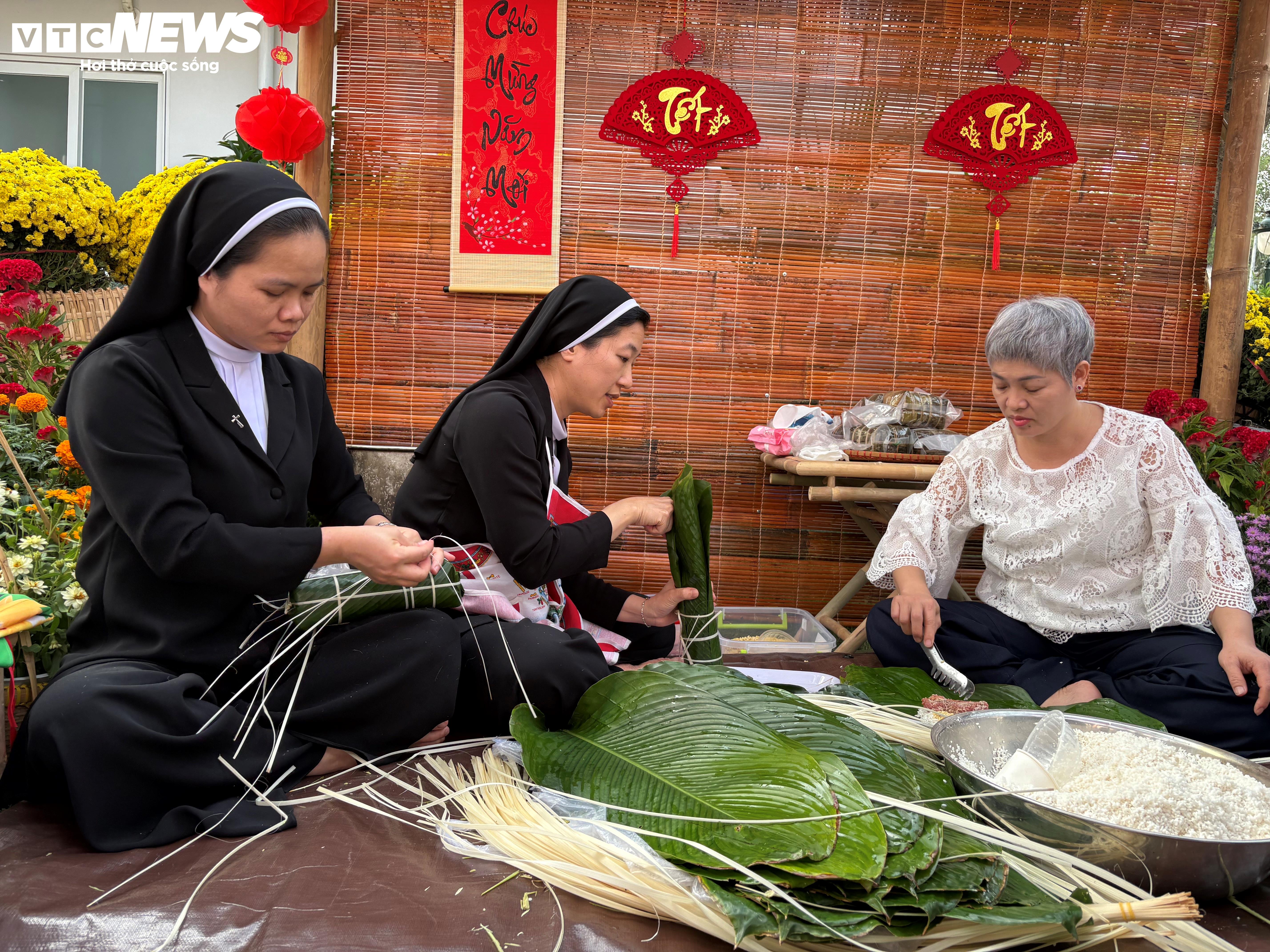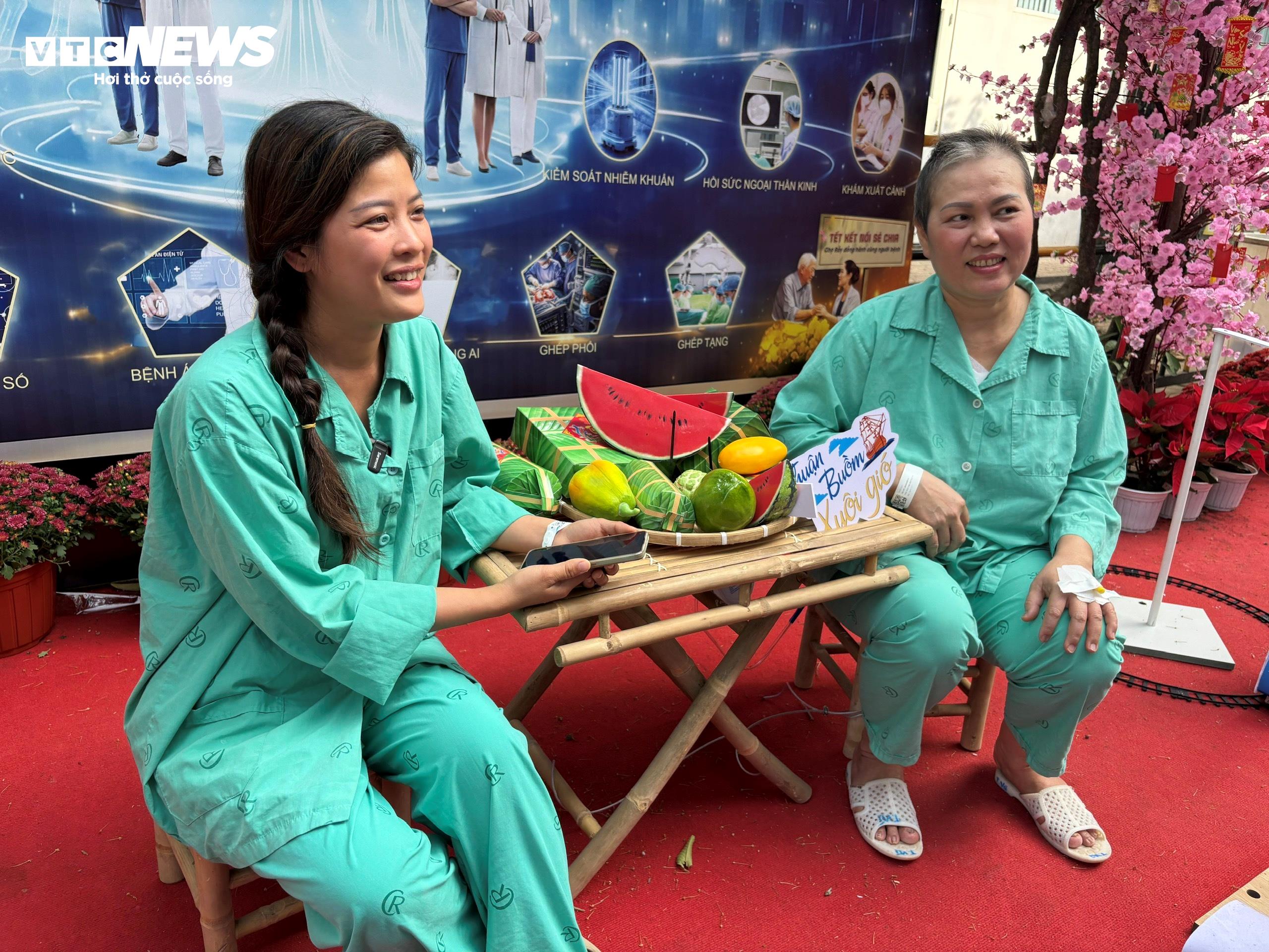 Dù không được về quê đón Tết, sum vầy bên gia đình nhưng người bệnh vẫn có cơ hội trải nghiệm gói bánh chưng, bánh tét - hoạt động không thể thiếu trong Tết cổ truyền của người Việt.