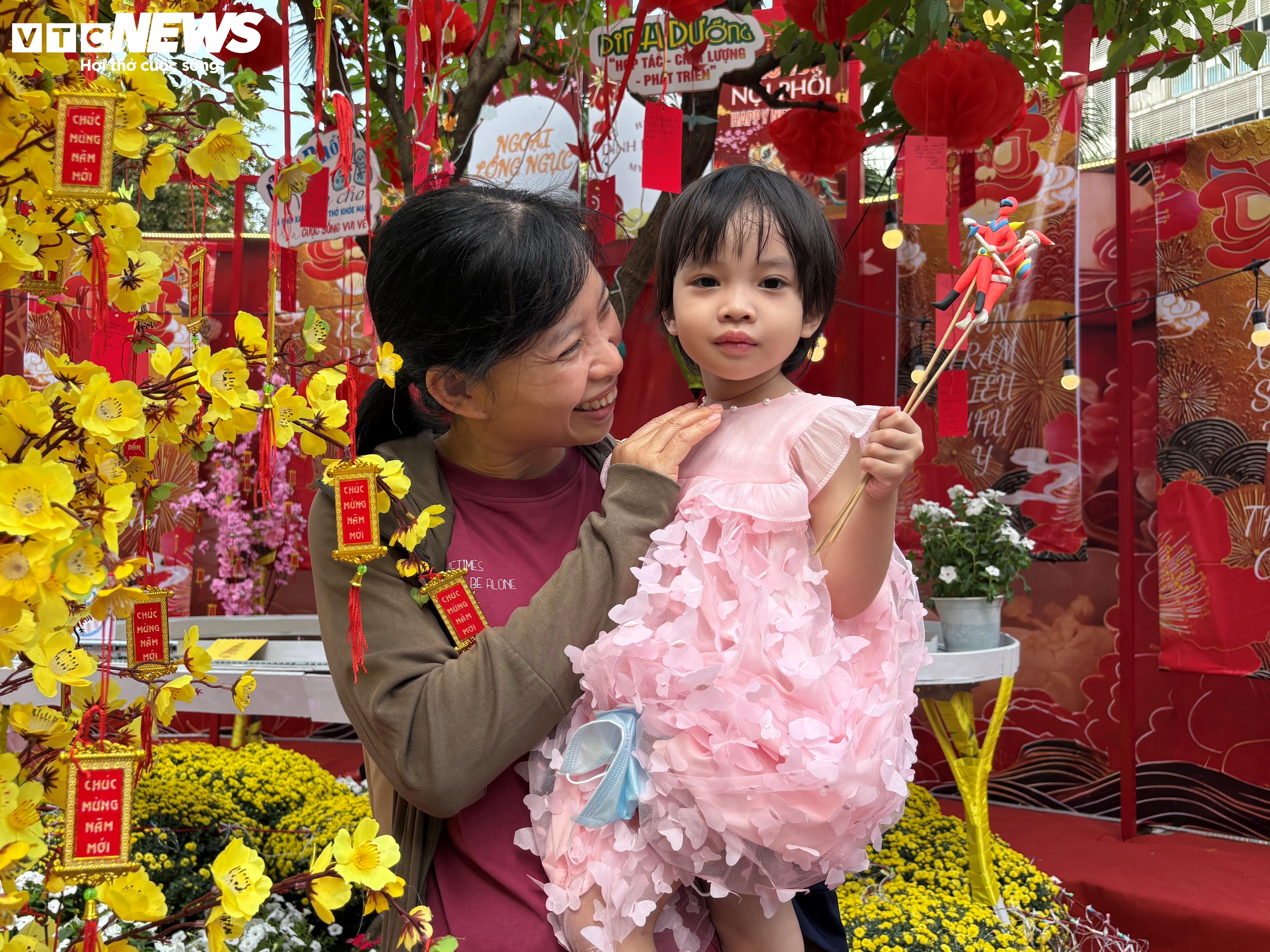 Tạm quên đi nỗi đau bệnh tật, bệnh nhân và người nhà hào hứng tham quan, chụp ảnh tại các tiểu cảnh ngập sắc xuân.