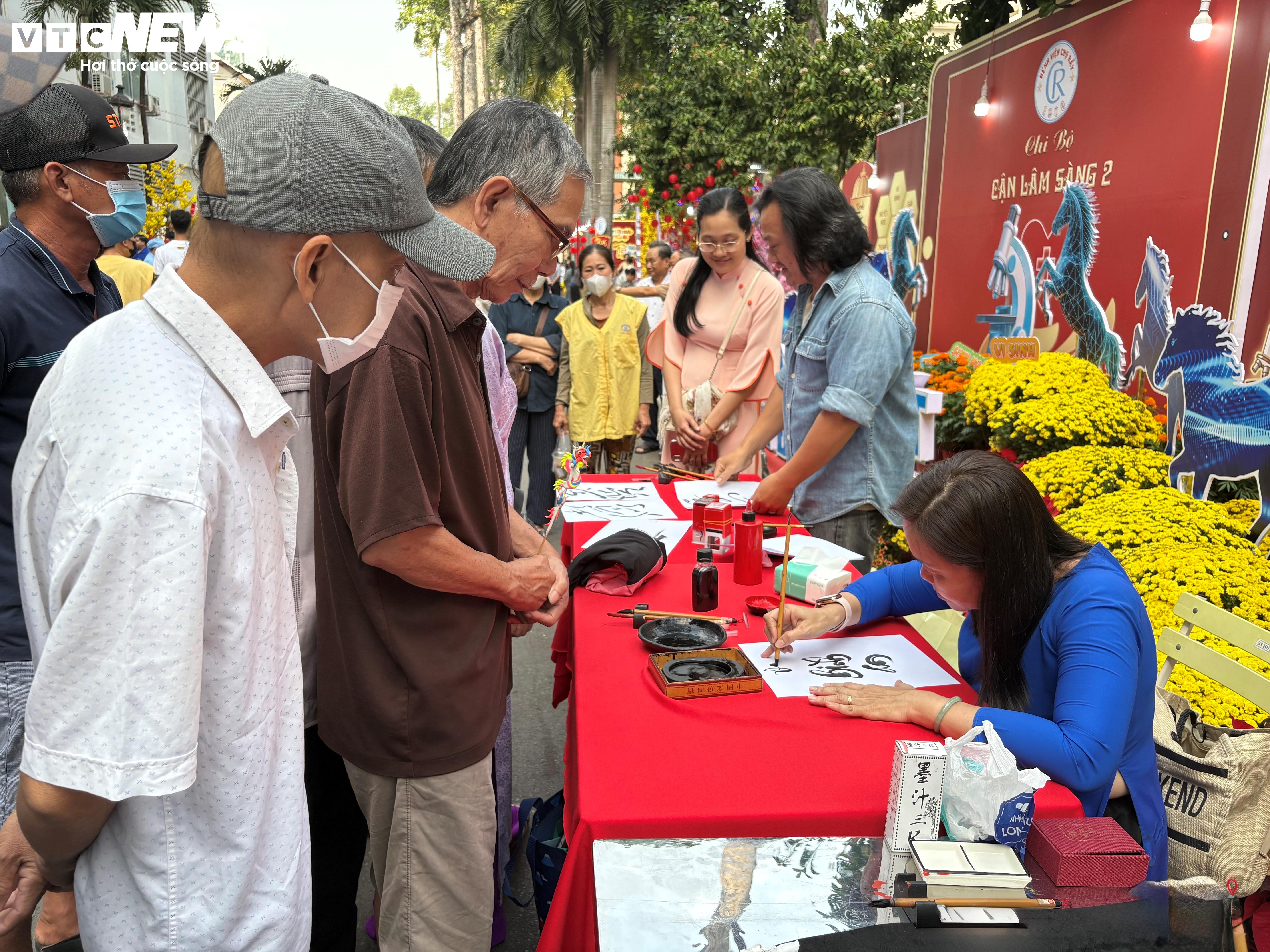 Khu vực ông đồ thu hút nhiều người đến xin chữ. Ai cũng mong ước một năm mới thịnh vượng, sức khỏe, bình an.