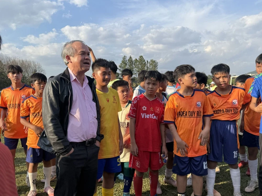 Ông bầu phố núi Đoàn Nguyên Đức hòa mình với niềm đam mê hiện tại ở sân bóng...