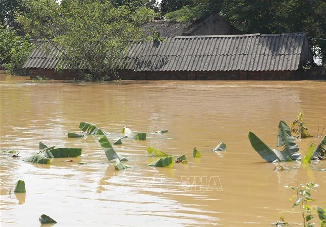 Nước nhấn chìm nhiều ngôi nhà tại Thôn Đa Hội, Xã Hợp Thịnh, Bắc Ninh. Ảnh: Thành Phương/TTXVN