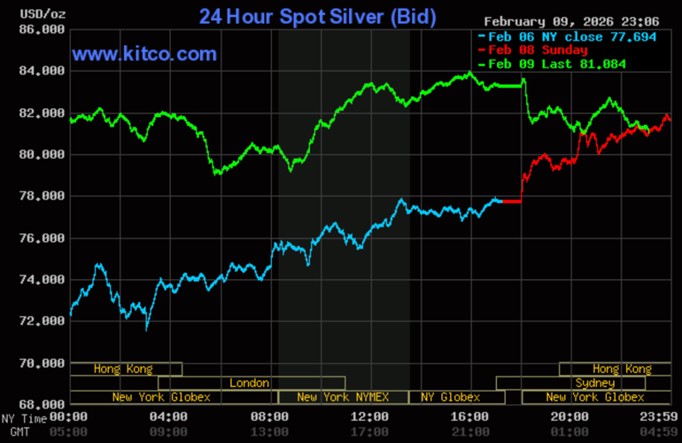 Tại thị trường thế giới, theo kitco.com, tính đến 11 giờ 6 phút sáng 10/2 (giờ Việt Nam), giá bạc giảm khoảng 2,17% xuống mức 81,08 USD/ounce, biên độ giao dịch từ 77,89-84,16 USD/ounce, chấm dứt đà tăng hai ngày liên tiếp khi các nhà giao dịch chốt lời, trong khi sự biến động trên thị trường kim loại quý vẫn tiếp diễn sau đợt giảm mạnh lịch sử trong những tuần gần đây.