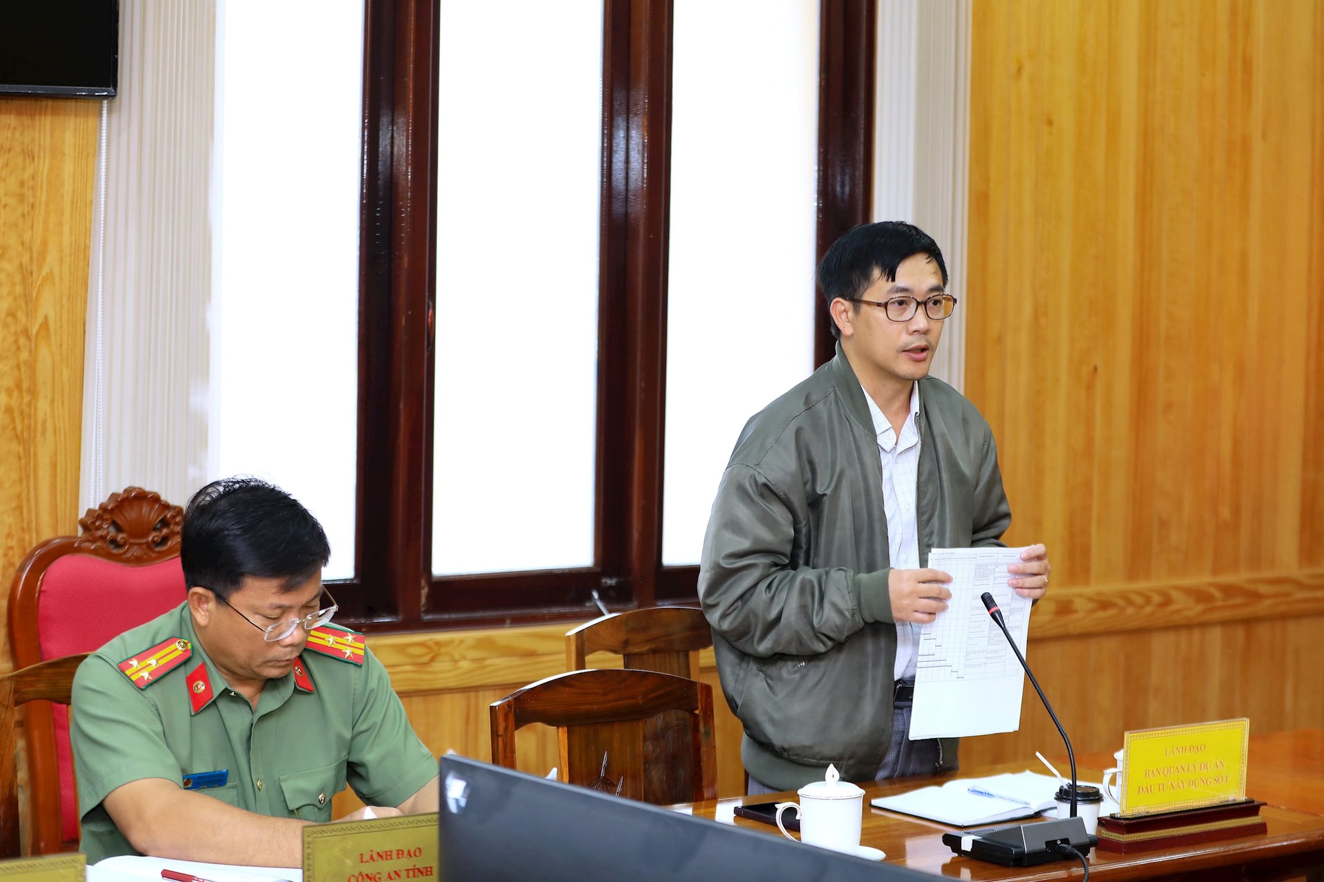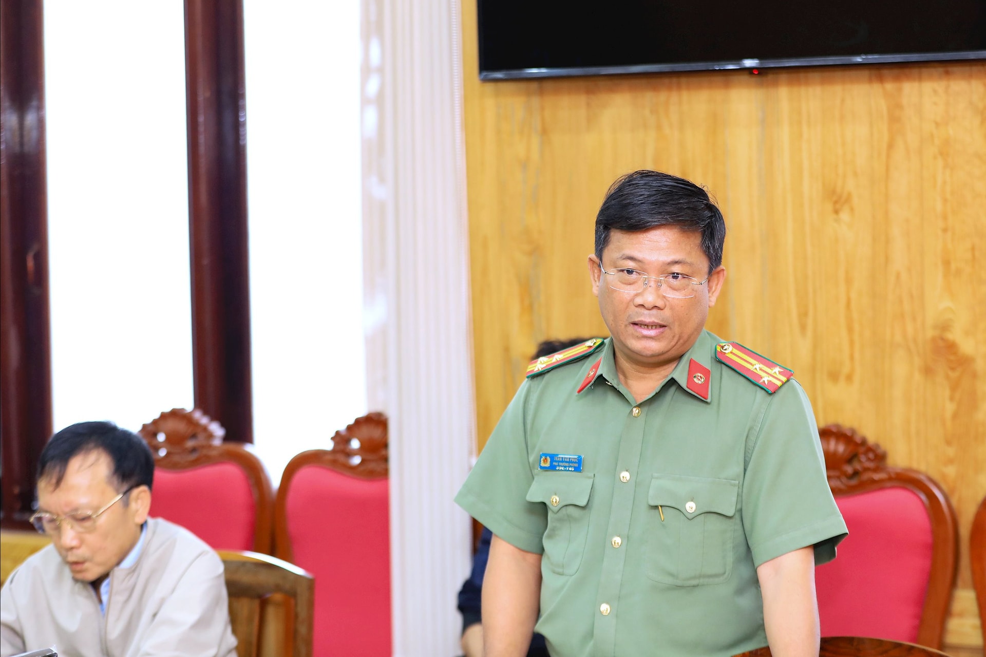 Đại diện Công an tỉnh trao đổi về các điều kiện bảo đảm an ninh, trật tự tại buổi lễ