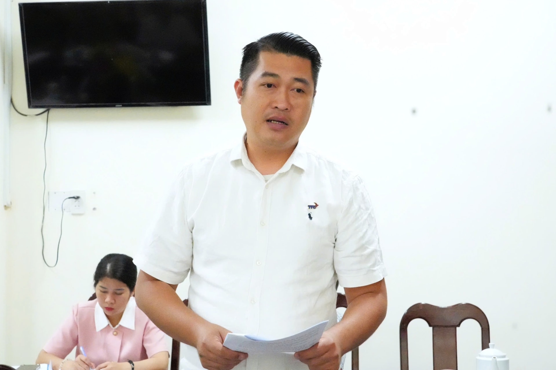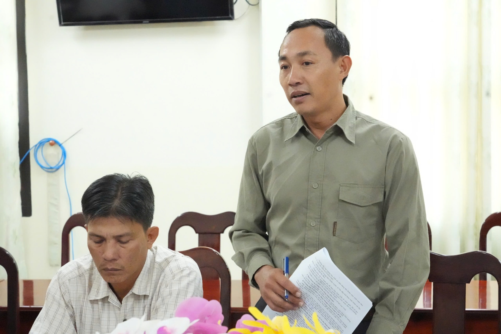 Đại diện xã Tân Thành trao đổi các nội dung chuẩn bị cho Giải leo núi Tà Cú tại cuộc họp