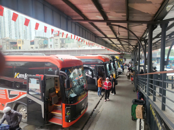 Báo cáo Thứ trưởng về tình hình hoạt động của các bến xe do đơn vị quản lý, ông Phạm Mạnh Hùng, Giám đốc Công ty CP Bến xe Hà Nội cho biết, đây là kỳ phục vụ quan trọng nhất trong năm. Nhằm bảo đảm không để hành khách đến bến mà không có xe về quê, công ty đã chủ động phương án thuê xe, sẵn sàng điều động khi cần thiết. Lượng phương tiện phục vụ tăng 350 - 400% so với ngày thường, song mới đạt khoảng 70-80% công suất bến, do đó vẫn đáp ứng tốt nhu cầu đi lại của người dân. Ông Hùng cho biết thêm, do kỳ nghỉ Tết kéo dài, lưu lượng hành khách phân bổ rải rác, không xảy ra tình trạng dồn ứ cục bộ như một số dịp lễ khác.