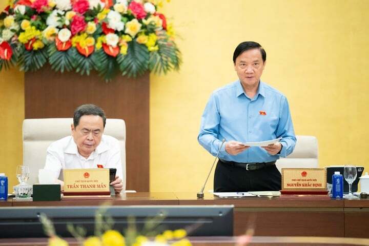 Phiên họp thứ 49, ngày 23/9, dưới sự điều hành của Phó Chủ tịch Quốc hội Nguyễn Khắc Định, Ủy ban Thường vụ Quốc hội đã cho ý kiến về dự án Luật sửa đổi, bổ sung một số điều của Luật Sở hữu trí tuệ. Ảnh: QH