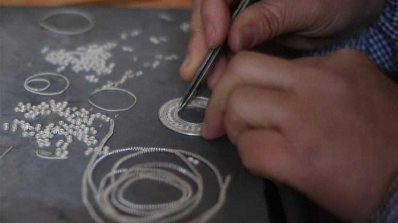 Nghệ nhân chế tác bạc tại Quý Châu, Trung Quốc. (Ảnh: Tân hoa xã)