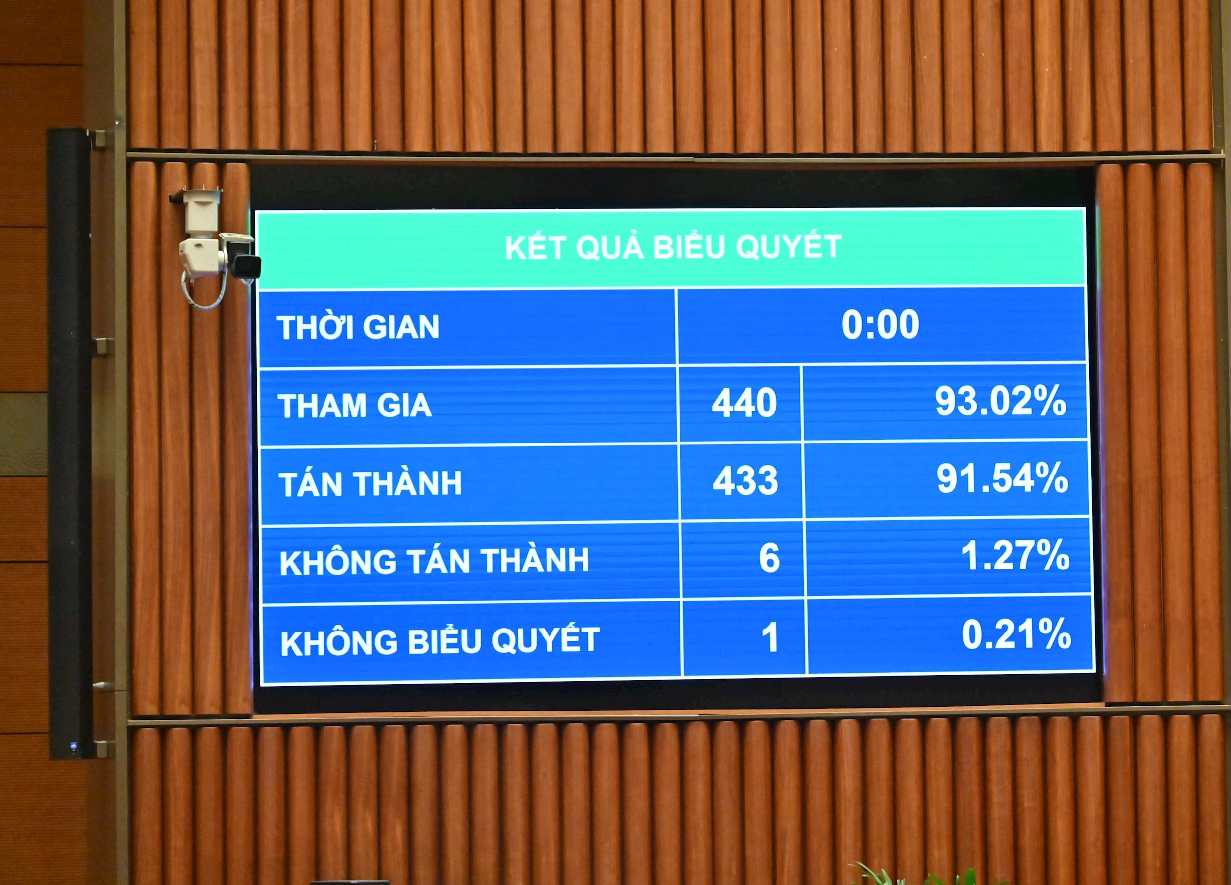 Quốc hội biểu quyết thông qua Luật Tiết kiệm, chống lãng phí với 433/440 ĐBQH có mặt tán thành. Ảnh: Quang Khánh