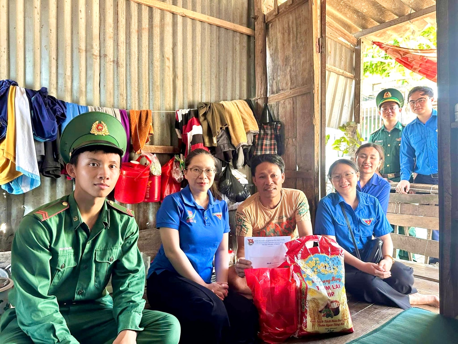 Trao quà cho các gia đình chính sách, hộ nghèo, thể hiện sự sẻ chia của tuổi trẻ đối với những hoàn cảnh khó khăn