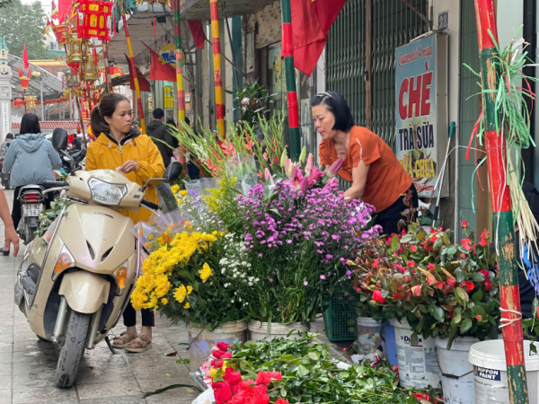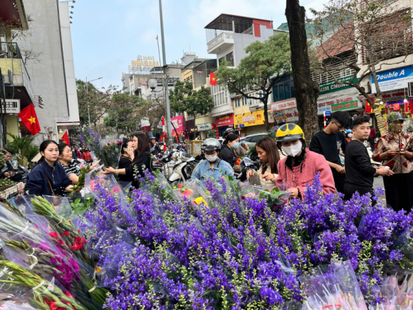 Năm nay, bên cạnh thực phẩm, các loại hoa cũng đa dạng chủng loại, phong phú. Từ các loại hoa truyền thống trồng tại các vùng quanh Hà Nội hay hoa nhập khẩu từ Trung Quốc như tuyết mai, mộc lan... được nhiều người tìm mua. Thời tiết năm nay khá thuận lợi cho vụ hoa Tết, nên hoa đẹp, khỏe và kích cỡ bông cũng to hơn năm ngoái. Giá cả "nhích” nhẹ, không tăng đột biến so với ngày thường.