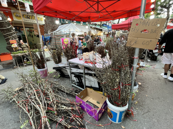 Tại chợ hoa Hàng Lược, ngay từ chiều 28 Tết, người bán đã giảm giá nhiều loại hoa. Những bó hoa mận từ 120.000 đồng còn 60.000 đồng/bó. Thậm chí, người bán chấp nhận mức giá 50.000 đồng/bó.