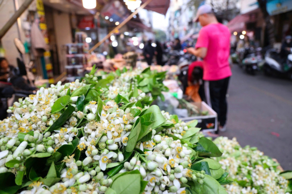 Trên phố Hàng Bè, hoa bưởi được bày bán cũng đã góp phần khiến không khí ngày Tết thêm phần tươi mới. Hoa bưởi xuất hiện sớm, khiến nhiều người cảm thấy bất ngờ, thích thú.