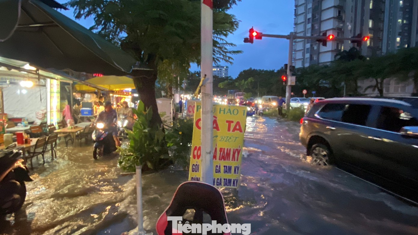 Nước kênh Tẻ dâng cao, gây ngập sâu trên đường Trần Xuân Soạn. Ảnh: Hữu Huy