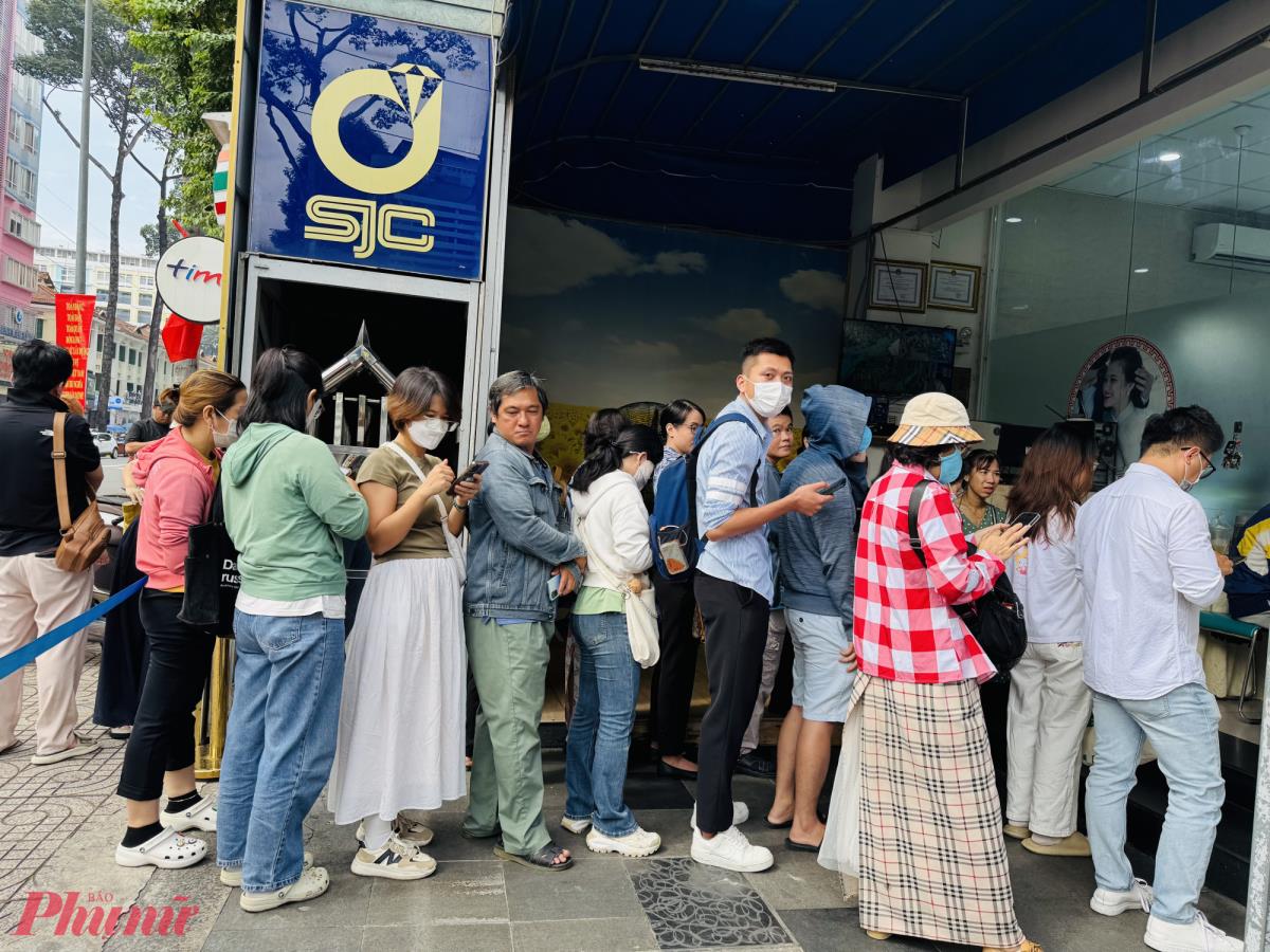 Chỉ mới 6g sáng, nhưng đoạn đường trước Công ty Vàng bạc đá quý Sài Gòn (SJC) đã kẹt xe do nhiều người đến mua vàng