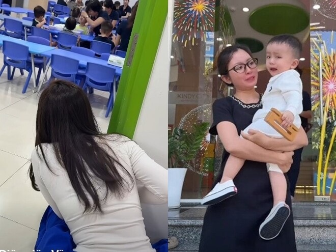 Giống như nhiều bà mẹ khác, Vân Trang đã chọn cách âm thầm đứng quan sát con từ xa để xem phản ứng của bé. Khi thấy mẹ xuất hiện vào giờ đón, nhóc tì đã không kìm được cảm xúc mà bật khóc nức nở trong vòng tay mẹ.