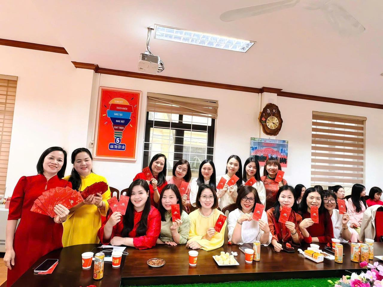 Nhân viên háo hức nhận phong bao lì xì như lời chúc khởi đầu thuận lợi. (Ảnh: Thu Hương)