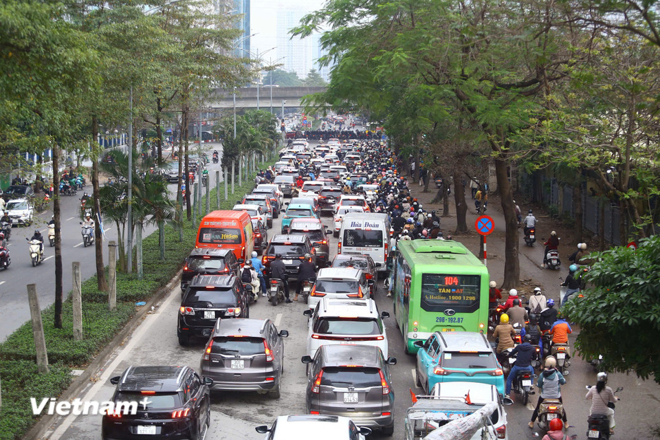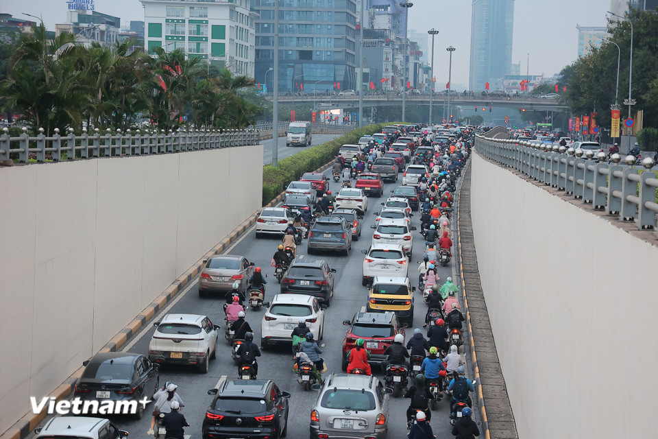 Cầu Vĩnh Tuy, buổi sáng ngày đầu đi làm sau kỳ nghỉ Tết.