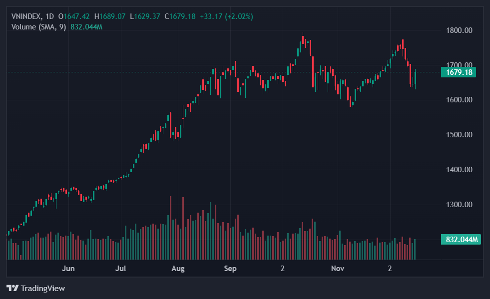 VN-Index tăng mạnh hơn 33 điểm. Ảnh: TradingView.