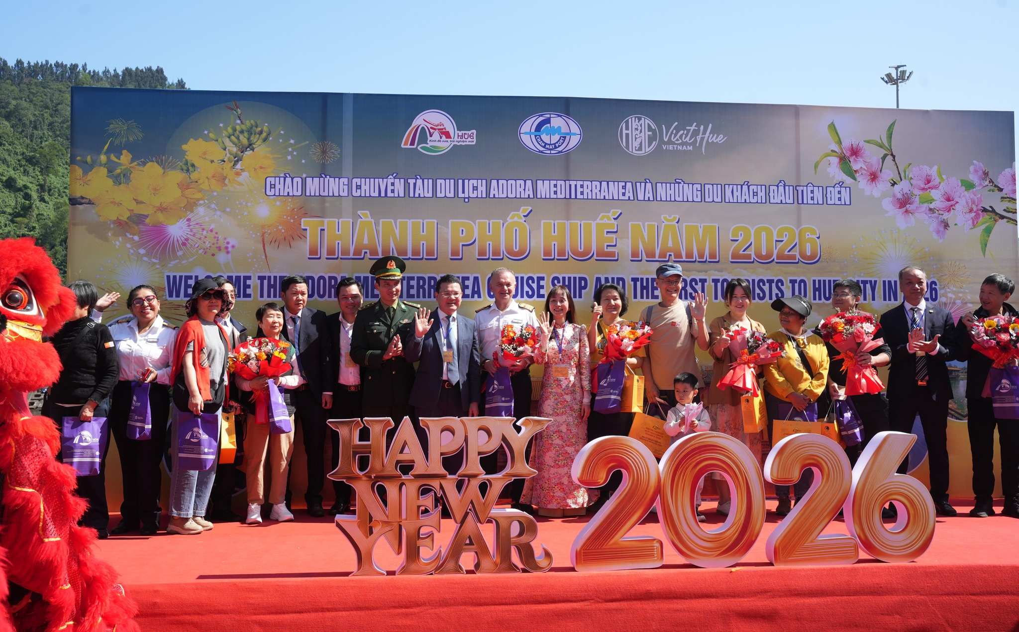 Sáng 1-1, chuyến bay VN1541 của Vietnam Airlines từ Hà Nội hạ cánh xuống sân bay Phú Bài, đưa hơn 180 hành khách đến Huế trong thời khắc đầu năm. Cùng ngày, tại cảng biển Chân Mây (xã Chân Mây – Lăng Cô), Huế đón tàu du lịch Adora Mediterranea (quốc tịch Bahamas) chở gần 1.000 khách quốc tế.