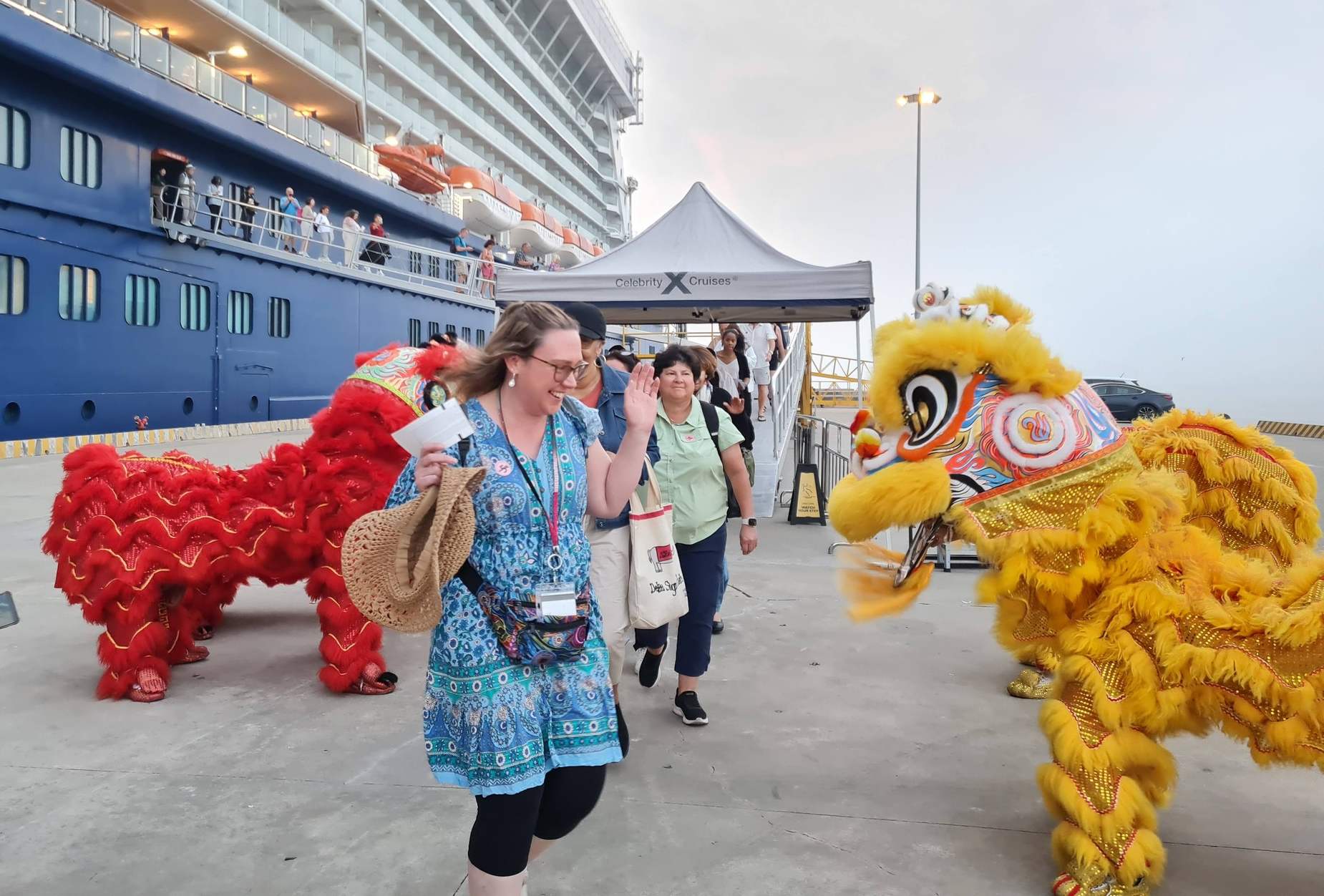 Du khách từ tàu Celebrity Solstice "xông đất" Quảng Ninh. Ảnh: Thông tin du lịch Quảng Ninh
