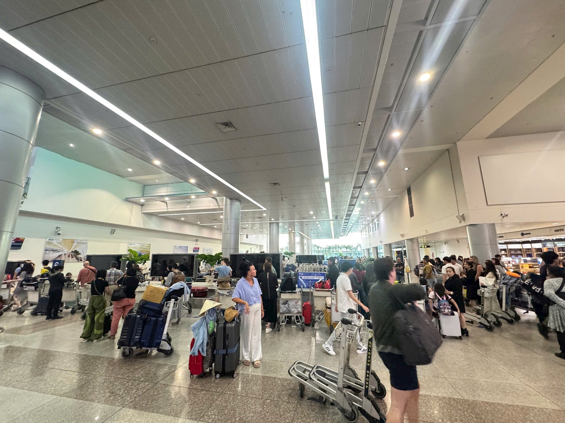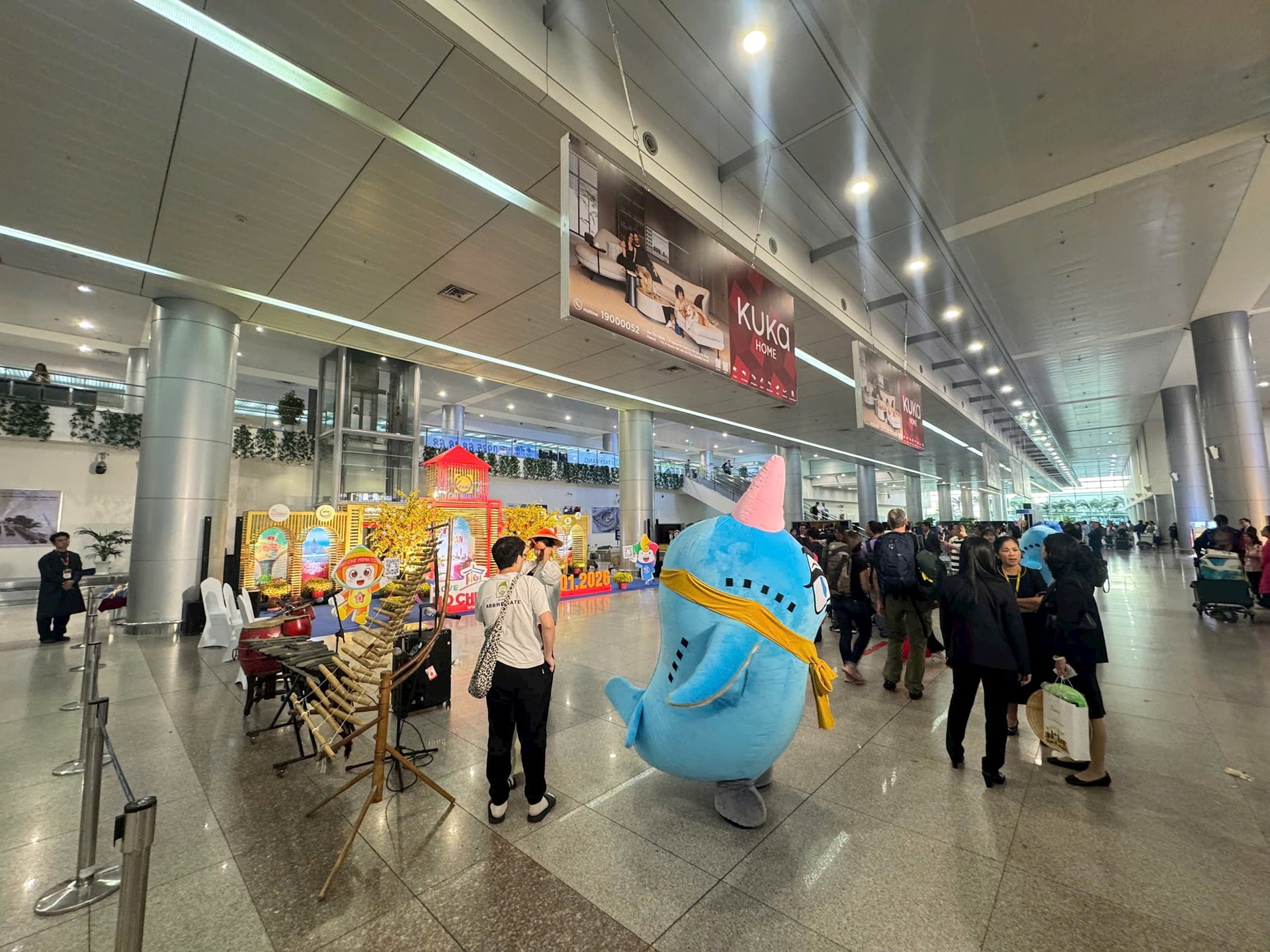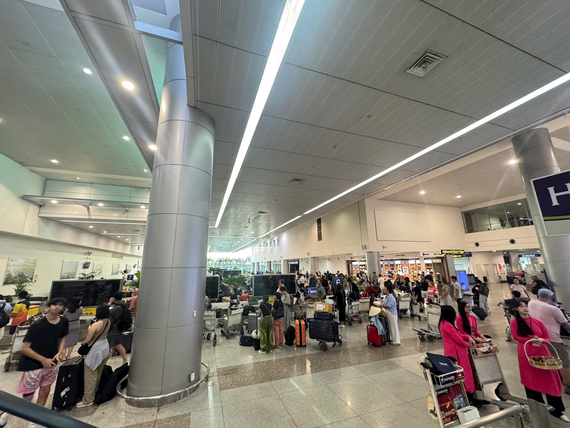 Ghi nhận tại sân bay, các khu vực đều tấp nập người, hành khách vui vẻ, thoải mái trải nghiệm chuyến bay đầu năm.