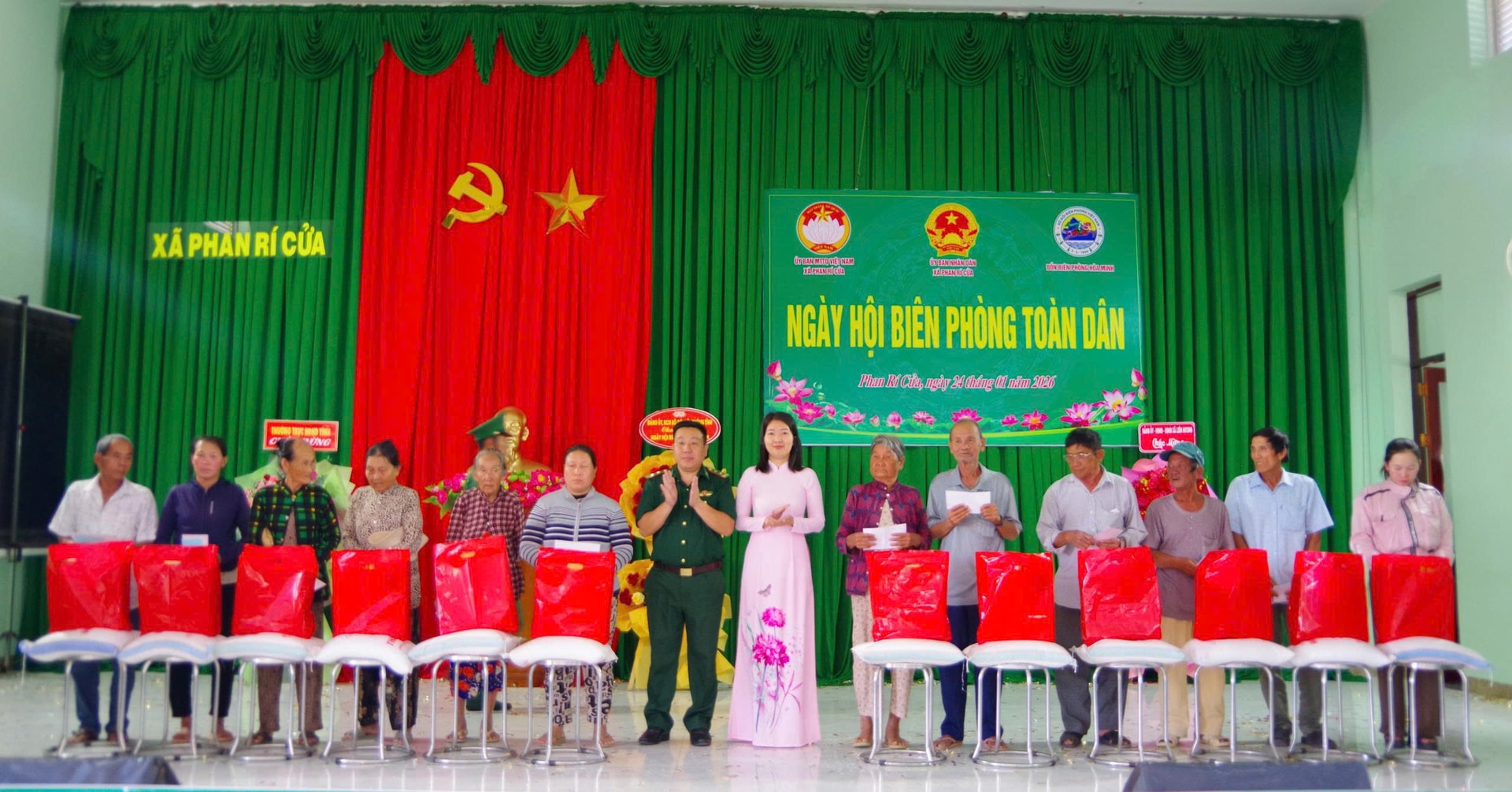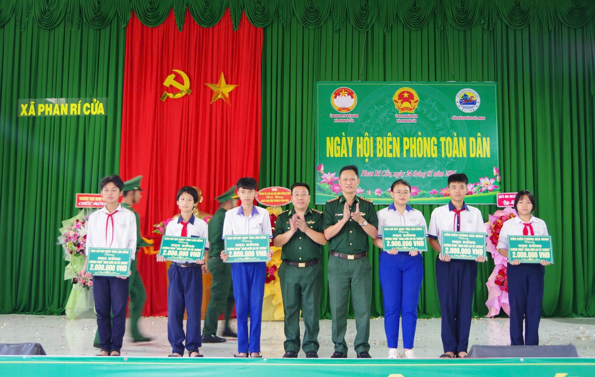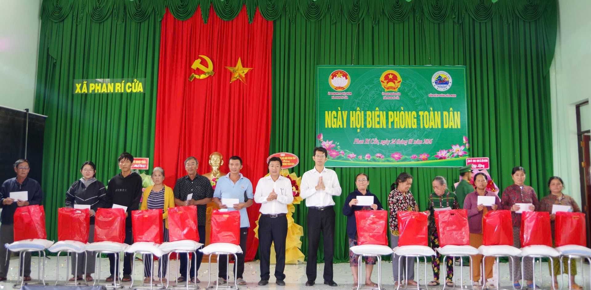 Tại Ngày hội Ban Chỉ huy Bộ đội Biên phòng tỉnh và Đồn Biên phòng Hòa Minh trao tặng 6 suất học bổng cho các cháu học sinh theo Chương trình “Nâng bước em tới trường”; mỗi suất trị giá 2 triệu đồng. UBND xã Phan Rí Cửa trao tặng 150 suất quà cho các hộ gia đình chính sách, khó khăn, mỗi suất 500.000 đồng, trị giá 75 triệu đồng.