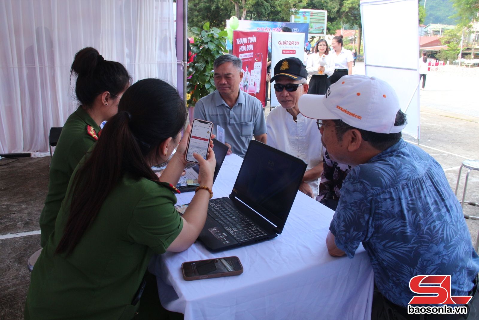 Ngày hội còn tổ chức trưng bày các gian hàng của các các doanh nghiệp viễn thông, ngân hàng, Công an xã, Trung tâm Phục vụ Hành chính công xã thực hiện hỗ trợ, hướng dẫn người dân sử dụng các nền tảng số, trải nghiệm công nghệ 5G, công nghệ XSGPON, Camera AI, Wifi Mesh 6 miễn phí; cài đặt chữ ký số, ví điện tử miễn phí; hỗ trợ miễn phí sim data; hỗ trợ dịch vụ internet miễn phí cho các hộ nghèo, cận nghèo; hỗ trợ, hướng dẫn chuyển đổi điện thoại 2G sang 4G, mở tài khoản thanh toán điện tử; hướng dẫn cài đặt và sử dụng ứng dụng VNeID; kỹ năng bảo đảm an toàn thông tin cho thiết bị di động, thiết bị thông minh, bảo vệ bản thân và gia đình trên môi trường mạng…