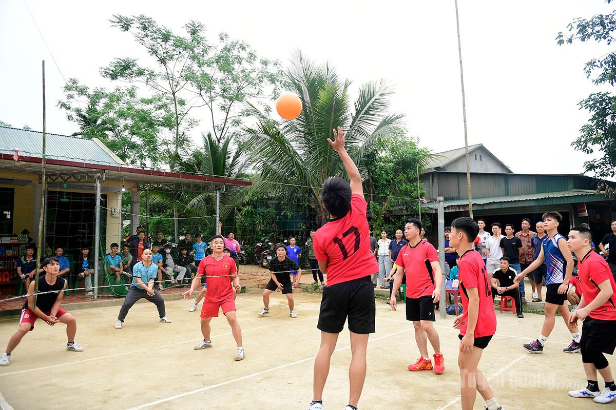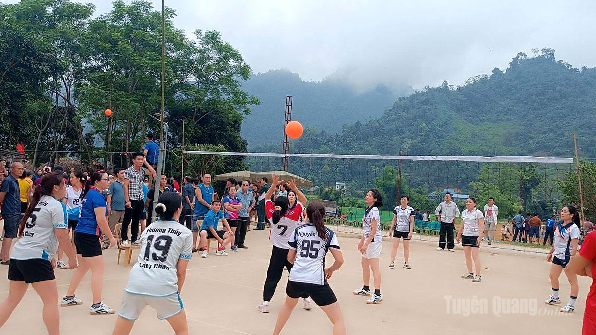 Màn thi đấu bóng chuyền hơi nữ giữa các thôn trong xã.