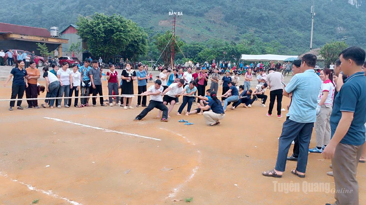 Màn thi đấu kéo co thu hút đông đảo nhân dân tham gia.