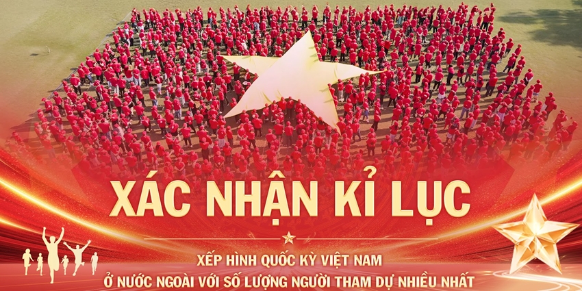 960 người Việt tại Kyushu tham gia hoạt động xếp hình Quốc kỳ Việt Nam