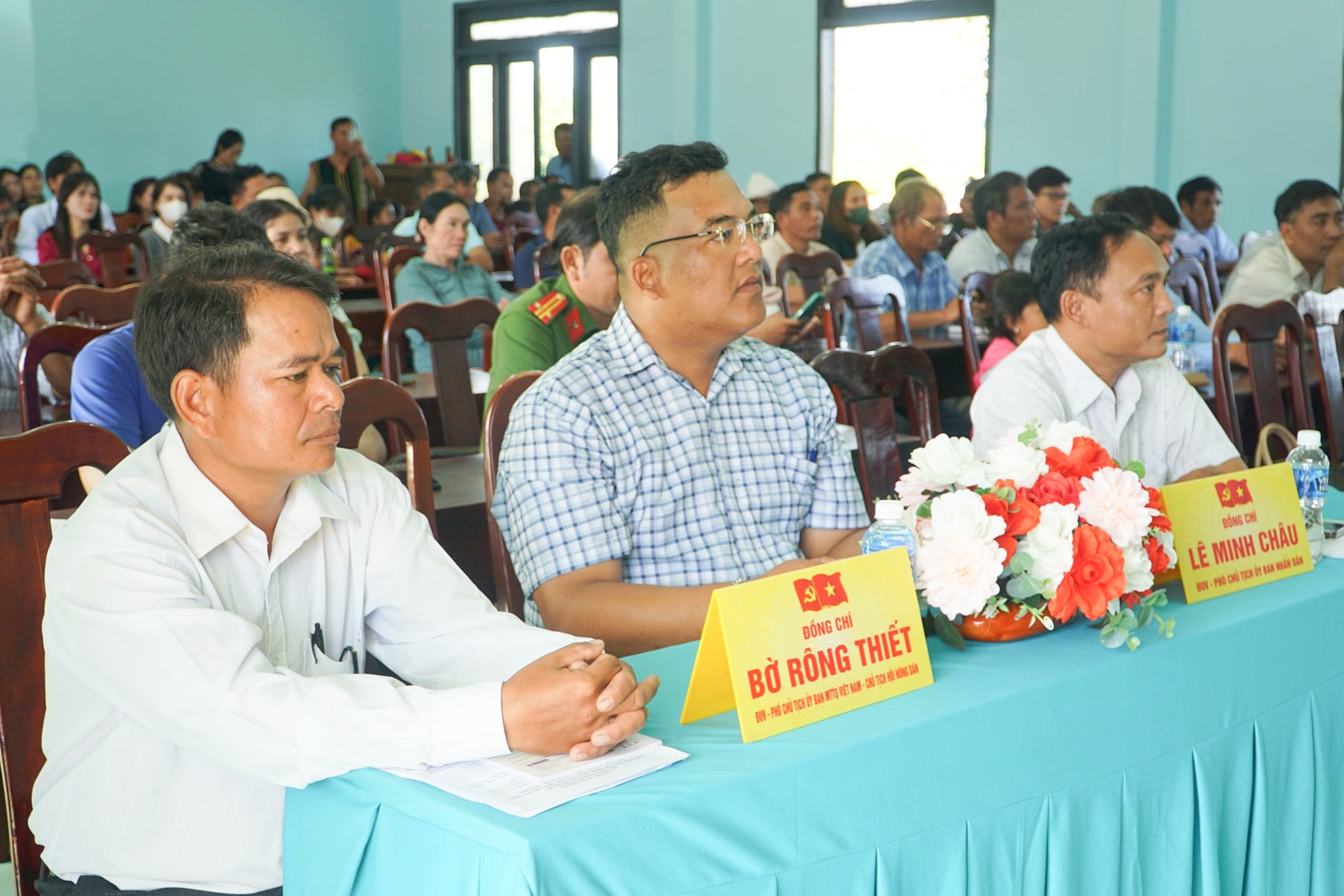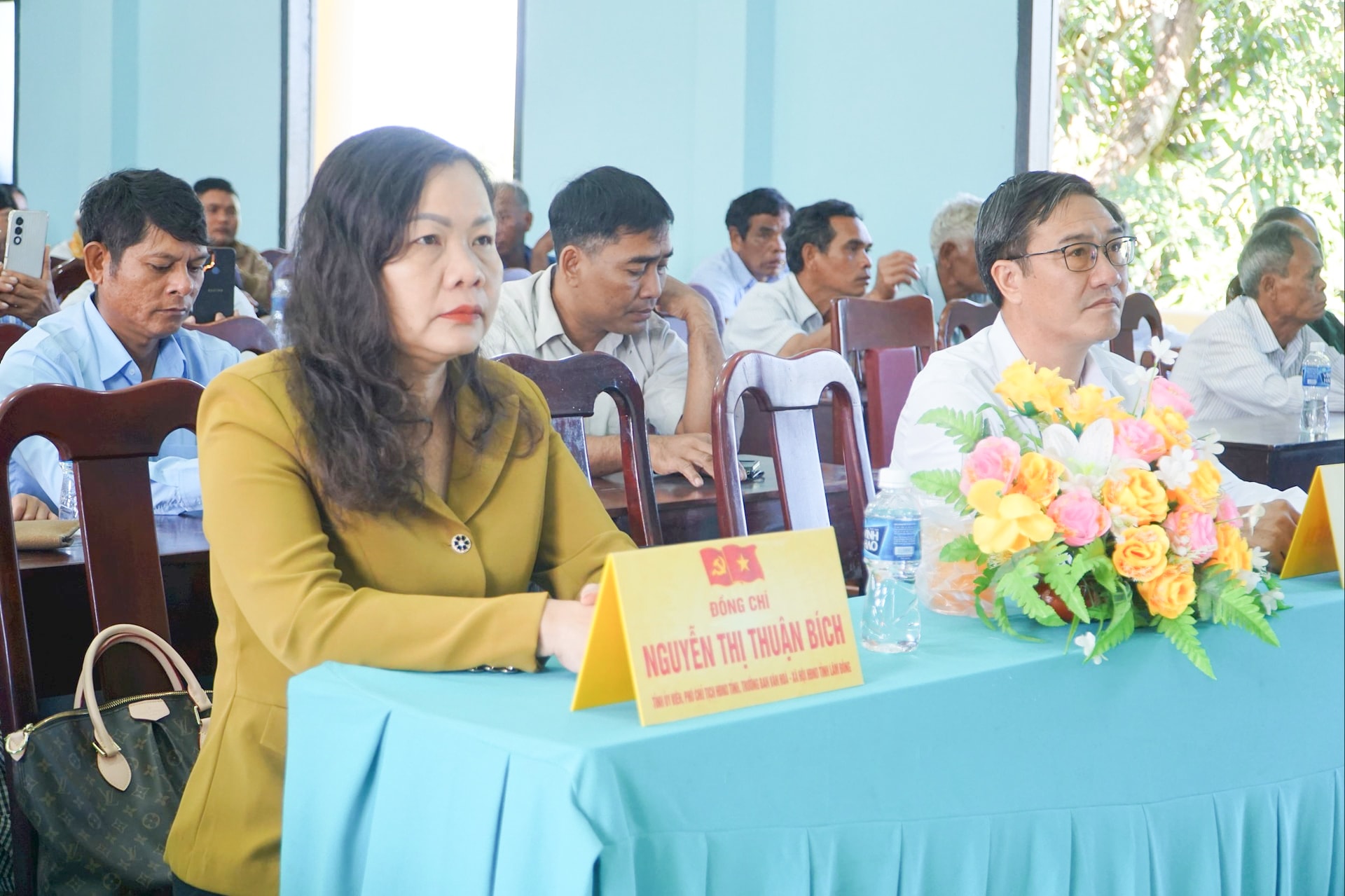 Phó Chủ tịch HĐND tỉnh, Trưởng Ban Văn hóa – Xã hội HĐND tỉnh Lâm Đồng Nguyễn Thị Thuận Bích và lãnh đạo xã dự Ngày hội Đại Đoàn kết toàn dân tộc ở thôn 2, xã Đông Giang