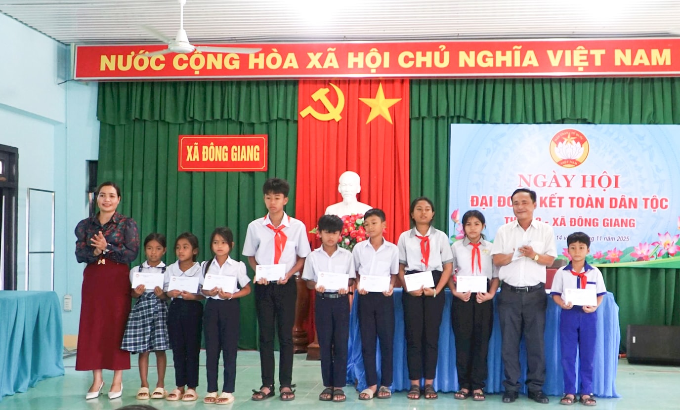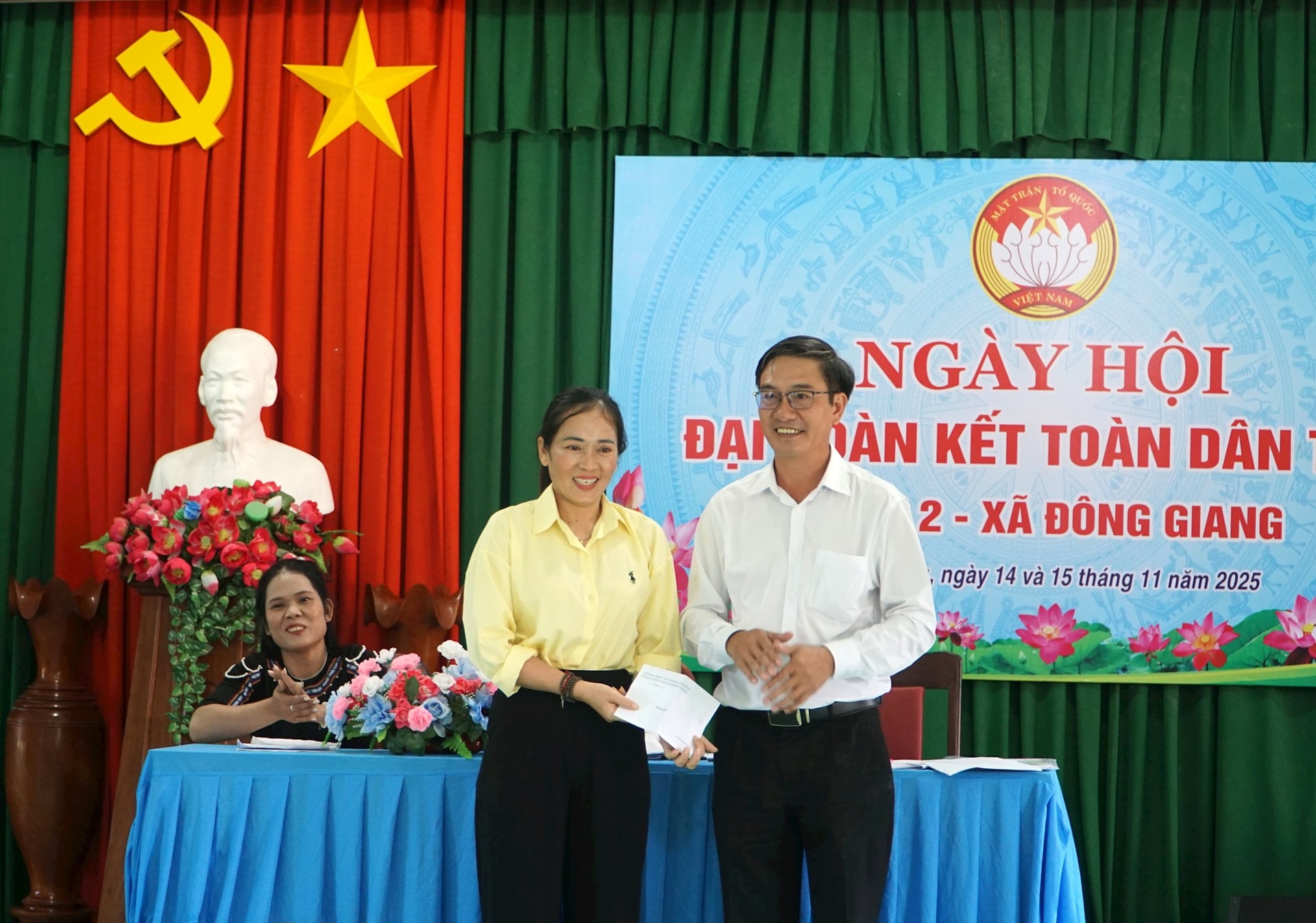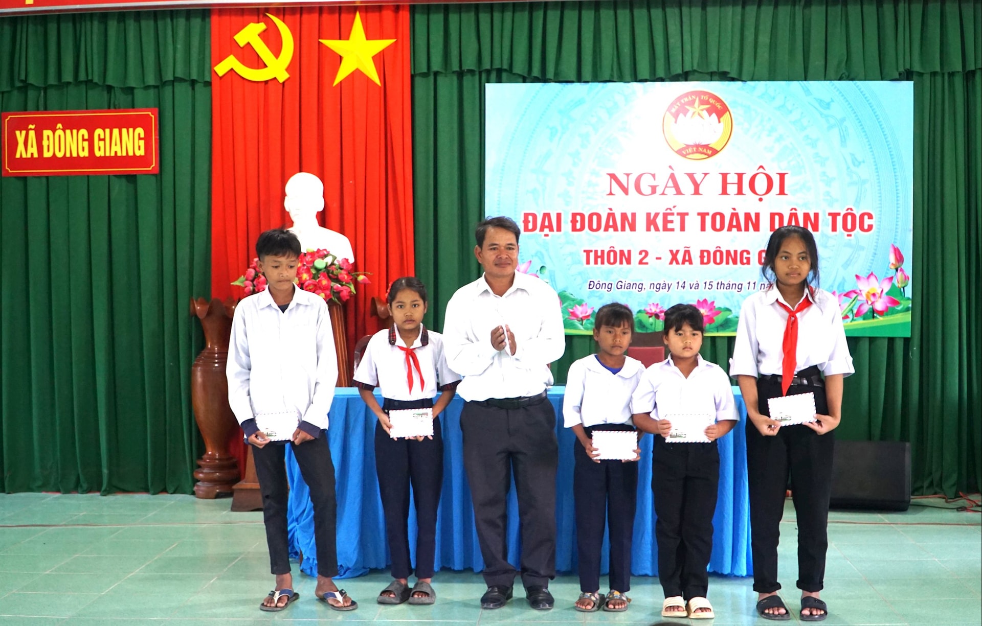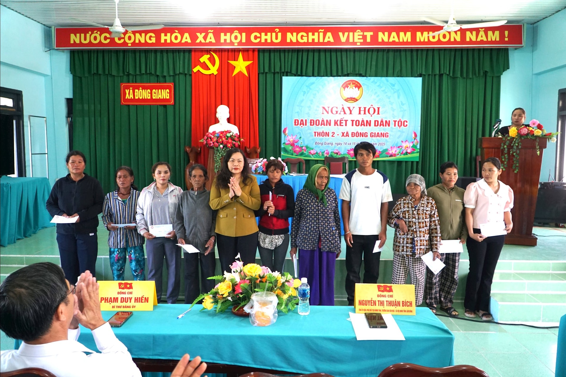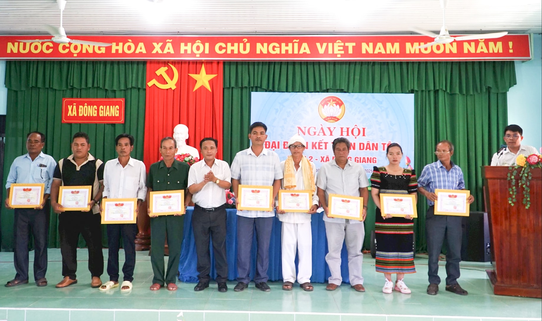 Dịp này, Phó Chủ tịch HĐND tỉnh Lâm Đồng Nguyễn Thị Thuận Bích và lãnh đạo xã Đông Giang cũng biểu dương, khen thưởng những tập thể, gia đình và cá nhân tiêu biểu có thành tích xuất sắc trong xây dựng cộng đồng dân cư và các phong trào thi đua; tặng quà các hộ dân có hoàn cảnh khó khăn, học sinh nghèo học giỏi trên địa bàn.