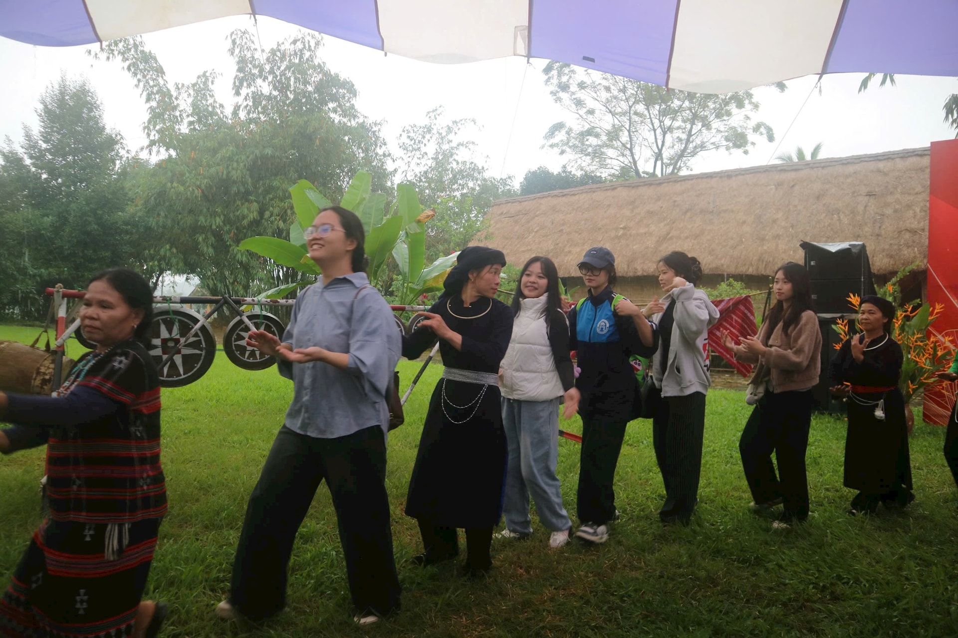 Tham gia Ngày hội, bạn Phạm Thị Bích Phượng, sinh viên năm 2 trường Đại học Mở Hà Nội chia sẻ ấn tượng của mình: “Đây là lần đầu tiên tôi được tham gia một sự kiện văn hóa lớn như vậy. Tôi cảm thấy rất may mắn khi đi đúng vào dịp tổ chức Ngày hội Đại đoàn kết toàn dân tộc. Mặc dù trời mưa nhưng tôi vẫn được cùng các bạn hòa chung vào những điệu múa cùng người đồng bào nơi đây”.