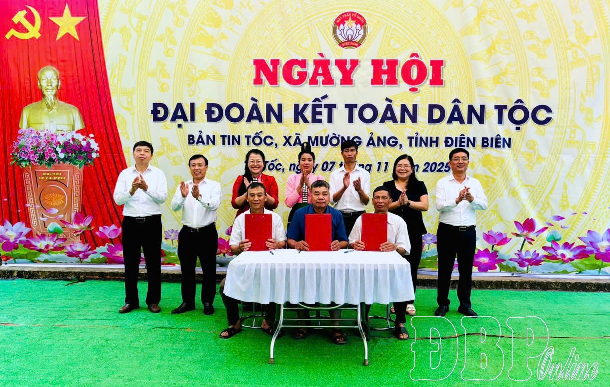 Nhân dịp này, các đồng chí lãnh đạo tỉnh, xã đã tặng quà cho cán bộ và nhân dân bản Tin Tốc; chứng kiến lễ ký kết giao ước thi đua năm 2026.