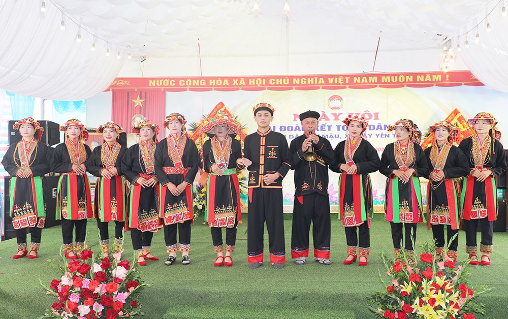 Phần trình diễn trang phục đặc trưng của người Dao thôn Mậu tại Ngày hội