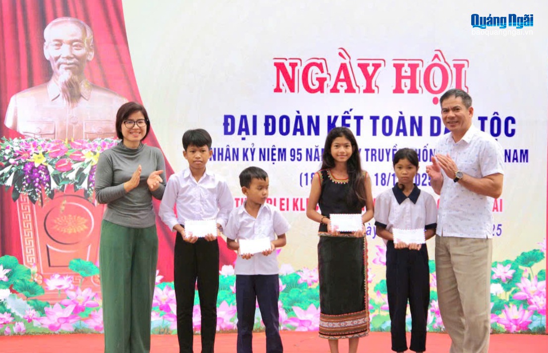 Nhân dịp này, Giám đốc Sở VH-TT&DL Phạm Thị Trung tặng 5 suất quà, mỗi suất 1 triệu đồng, cho các gia đình có hoàn cảnh khó khăn; 5 suất học bổng cho các em học sinh vượt khó học giỏi, mỗi suất 500 nghìn đồng.