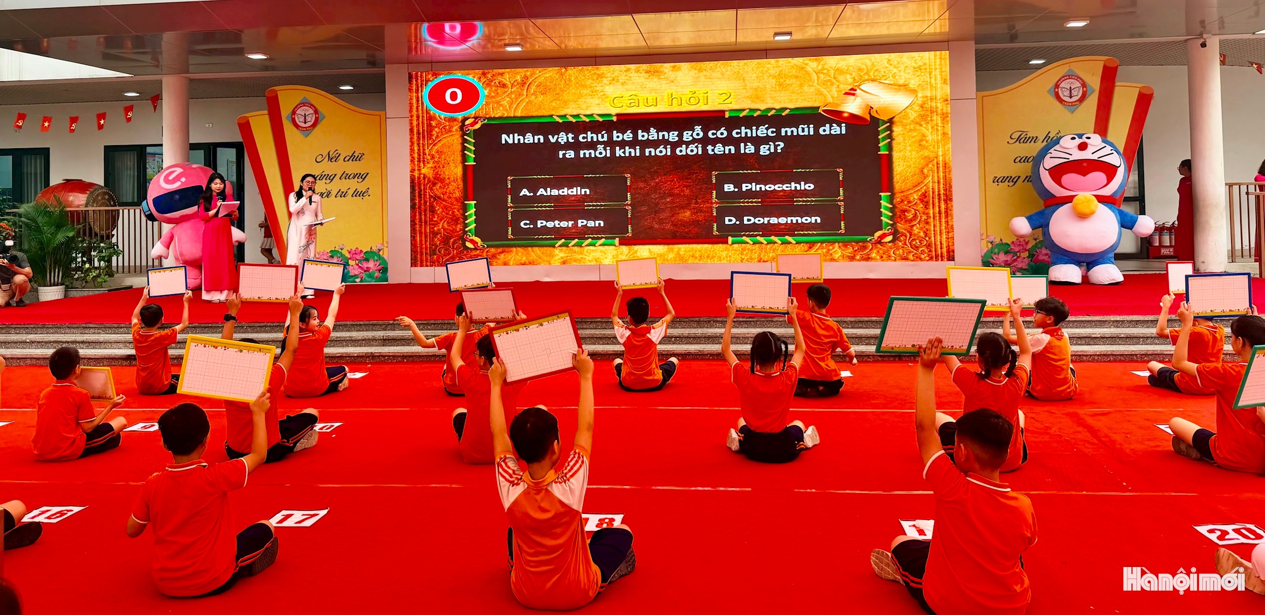 Đặc biệt, phần thi “Rung chuông vàng” của ngày hội đã trở thành điểm nhấn hấp dẫn, nơi các em được thử thách kiến thức, phản xạ và sự hiểu biết về sách trong không khí hào hứng, cổ vũ nhiệt tình từ thầy cô và bạn bè.