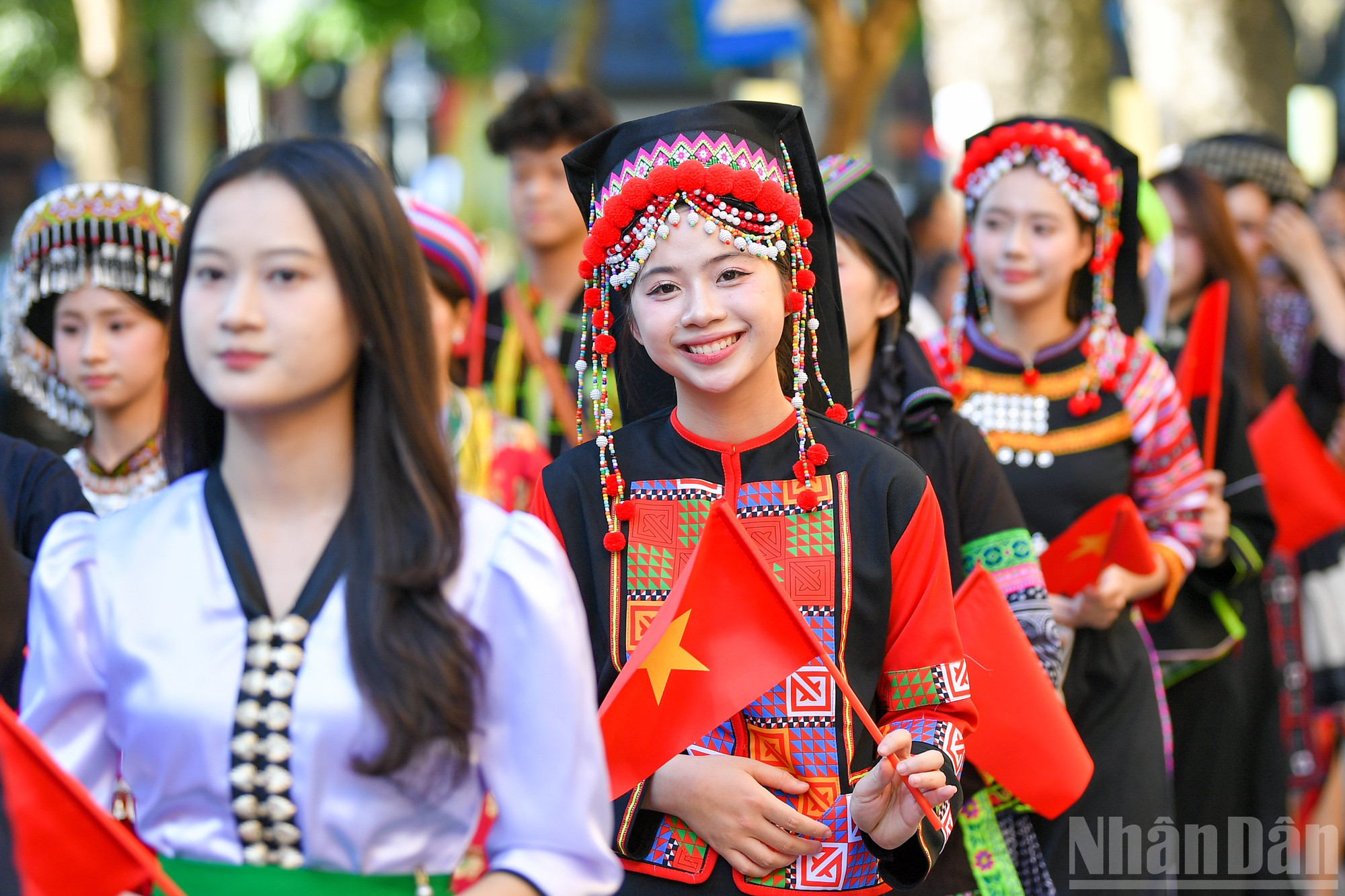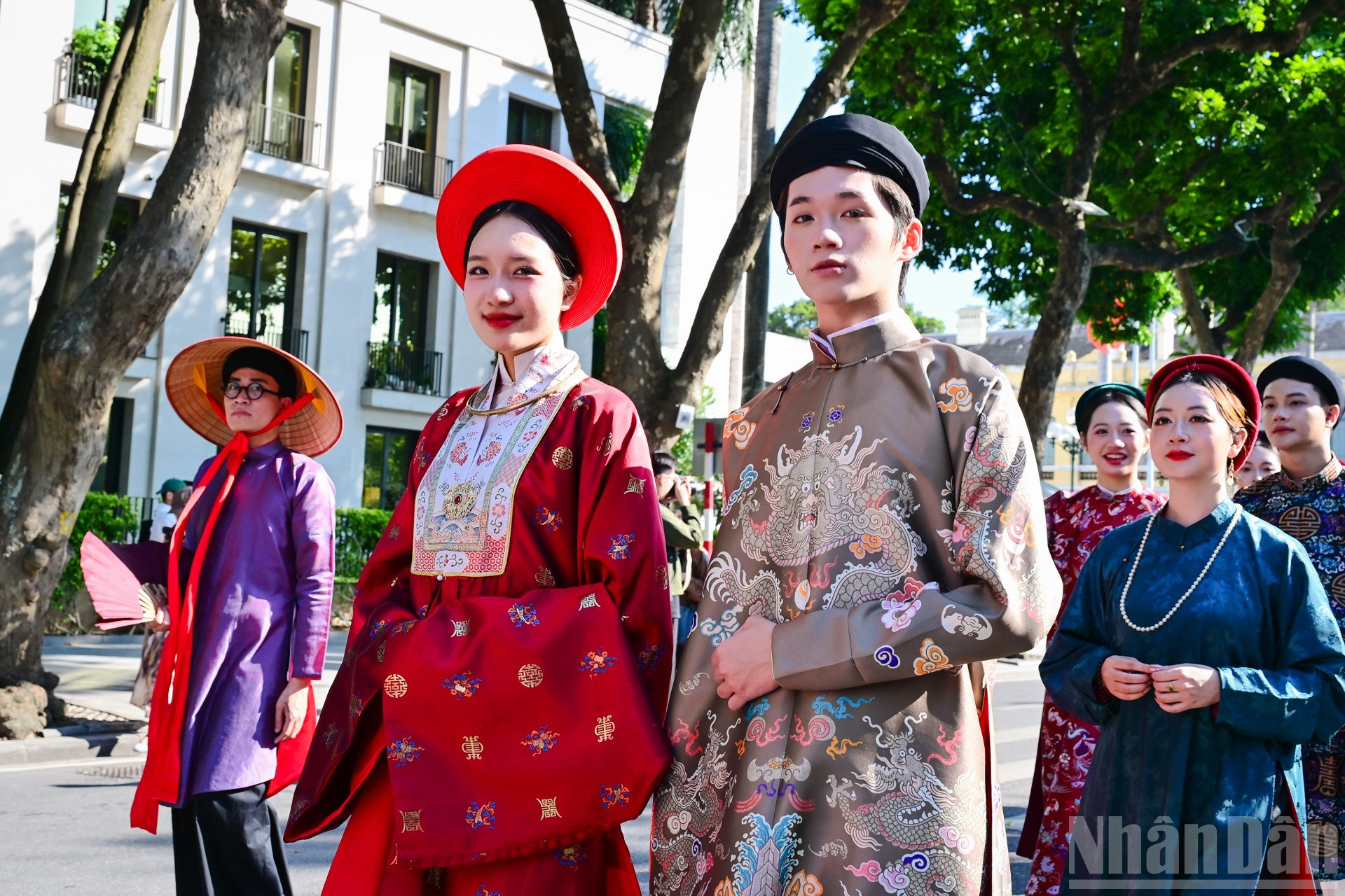 Đoàn diễu hành trong sắc màu truyền thống rực rỡ di chuyển qua các tuyến phố quanh Hồ Hoàn Kiếm và khu vực Quảng trường Đông Kinh Nghĩa Thục từ 14 giờ đến 17 giờ, tạo nên một không gian văn hóa sôi động giữa tiết thu Hà Nội.