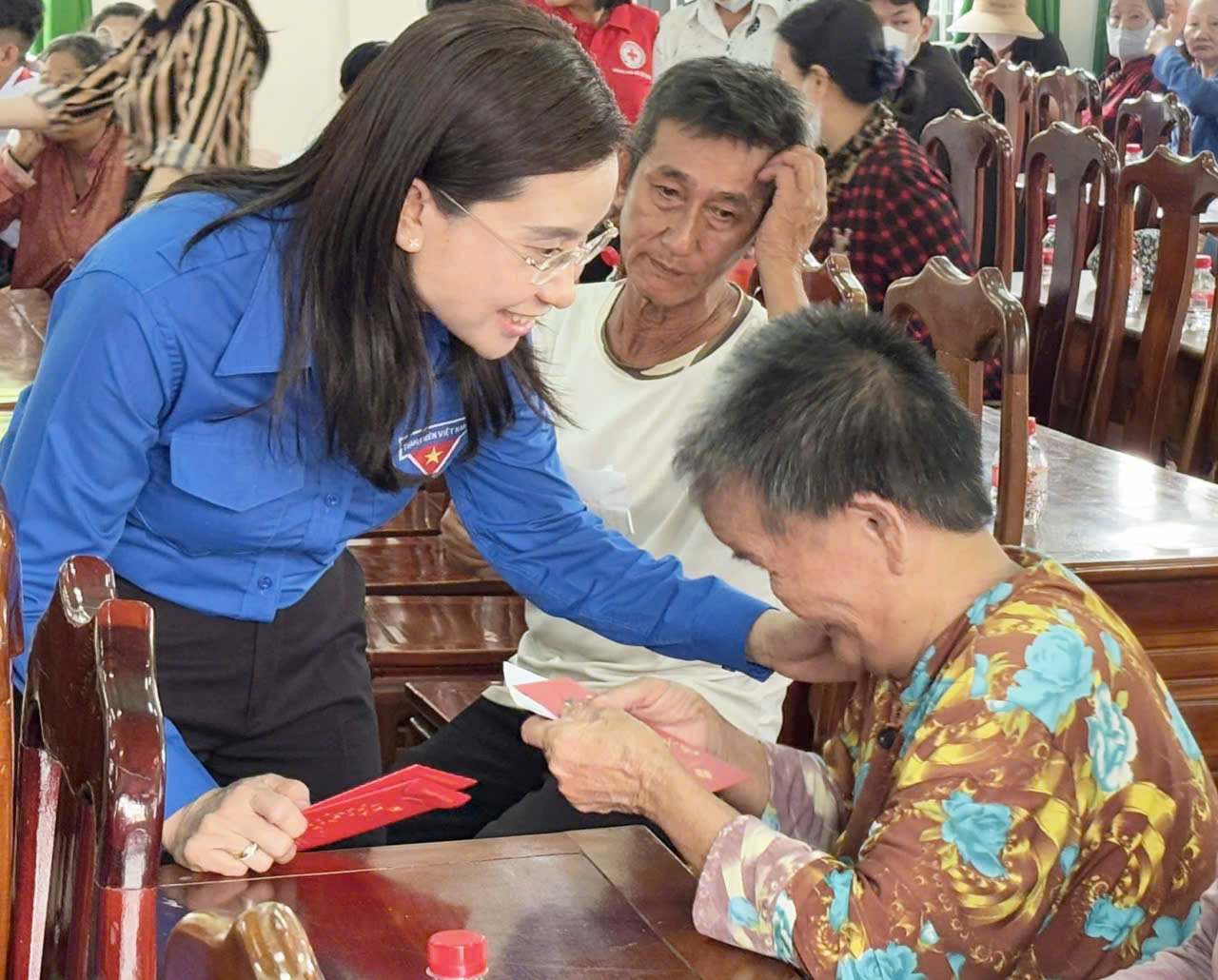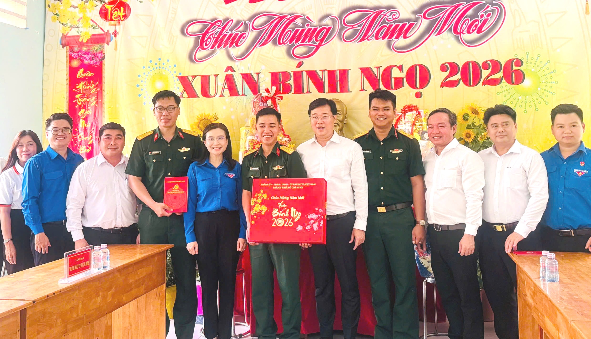 Đoàn tặng quà cho cán bộ, chiến sĩ và người dân tại xã Dầu Tiếng