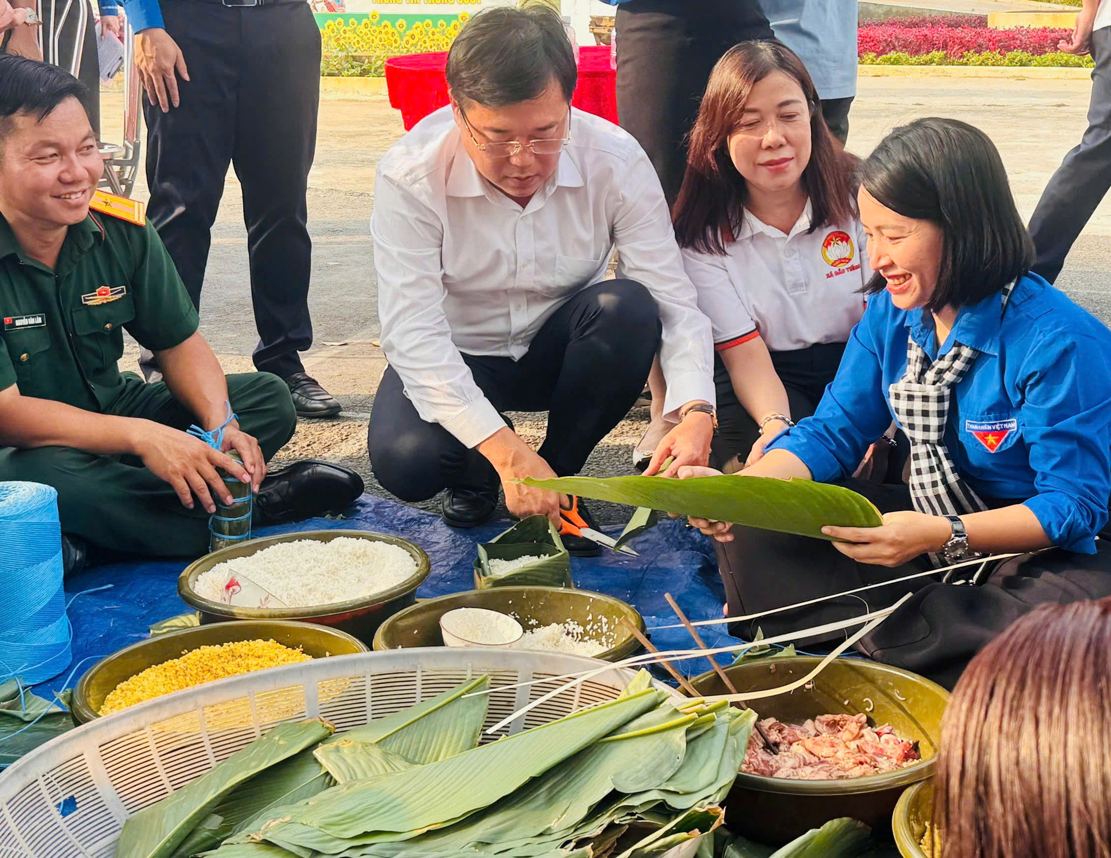 Đoàn tham dự chương trình “Gói, nấu bánh chưng, bánh tét” tại xã Dầu Tiếng và trao 50 phần quà cho hộ khó khăn tại các ấp.