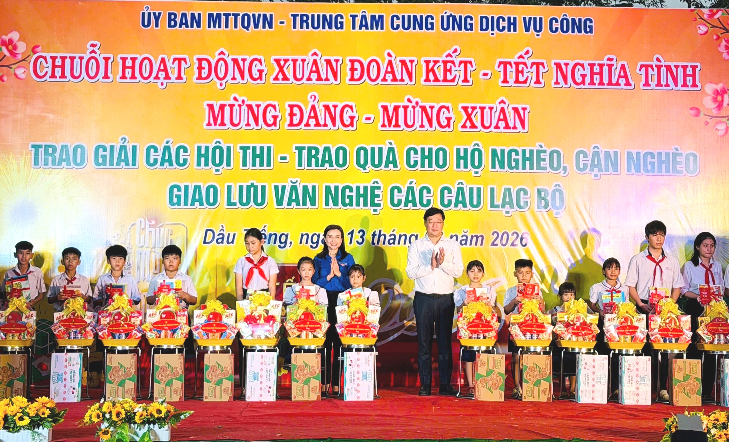 Buổi tối, trong khuôn khổ Ngày hội “Xuân đoàn kết – Tết nghĩa tình” của xã Dầu Tiếng, đoàn công tác tiếp tục trao 208 phần quà cho hộ nghèo, cận nghèo và các hộ thoát nghèo giai đoạn 2022-2024.